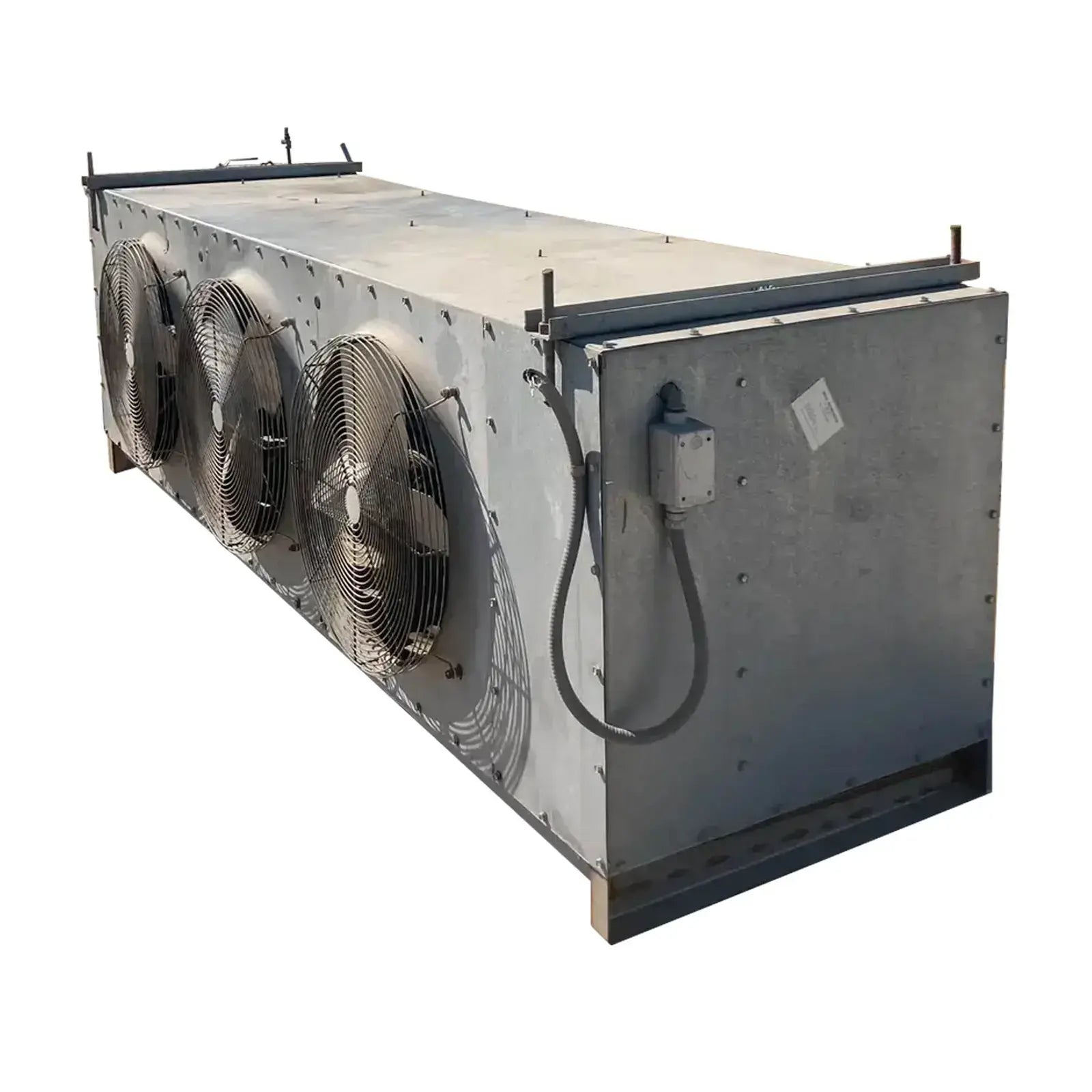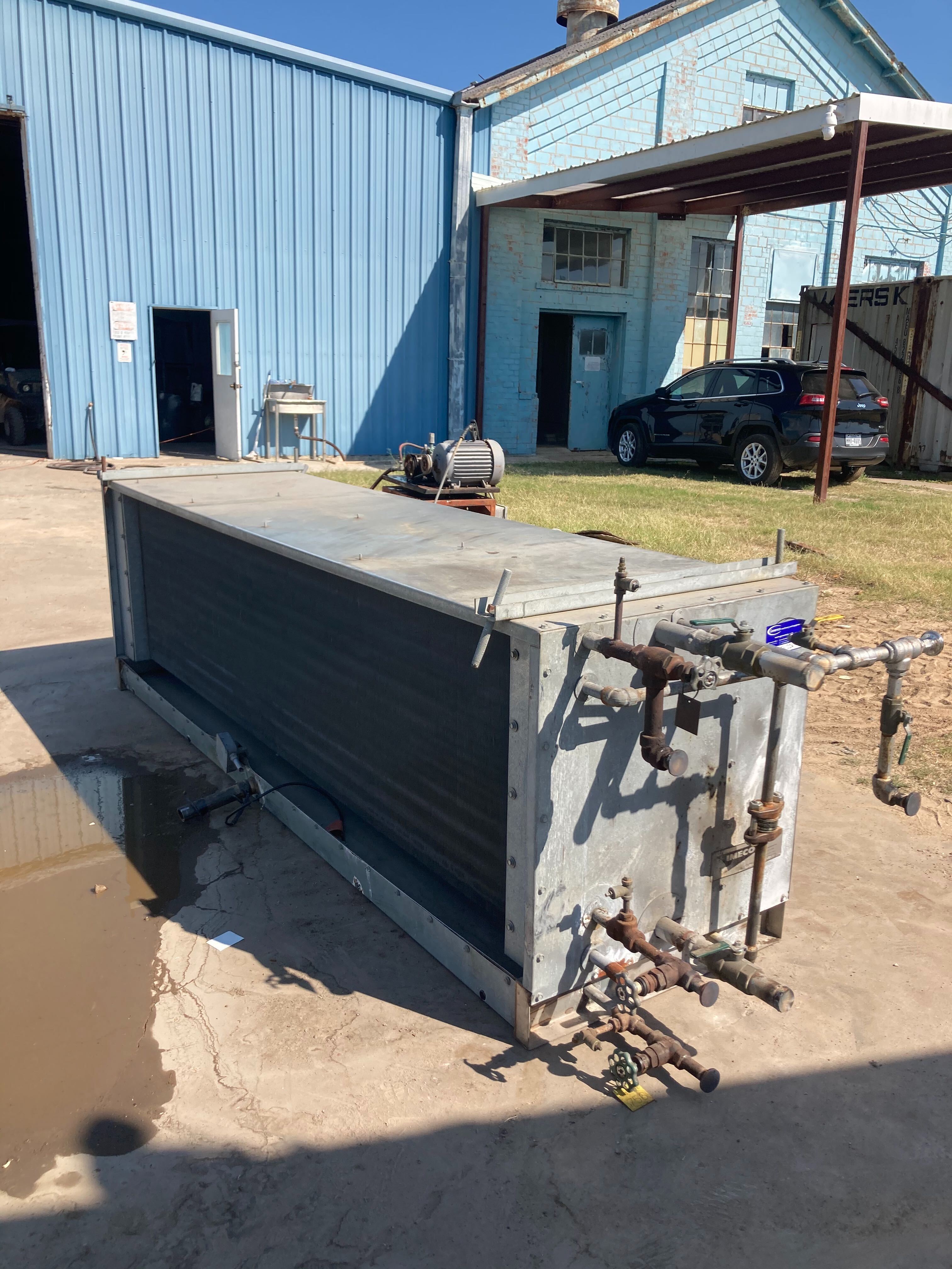 Imeco CO-324-44 Serpentín evaporador de amoníaco -9TR, 3 ventiladores (baja temperatura) Este evaporador funciona con serpentines esmerilados de baja temperatura. Tiene una capacidad de 7350 (BTUH / °F TD) con un tonelaje estimado de 9(TR) @15TD. Un flujo de aire de 13340 CFM. Utiliza serpentines de alimentación superior recirculados con un sistema de descongelación por gas. Anteriormente funcionaba con amoníaco, pero es comparable al freón. Este paquete también incluye 3 motores de ventilador de 0,3 HP.