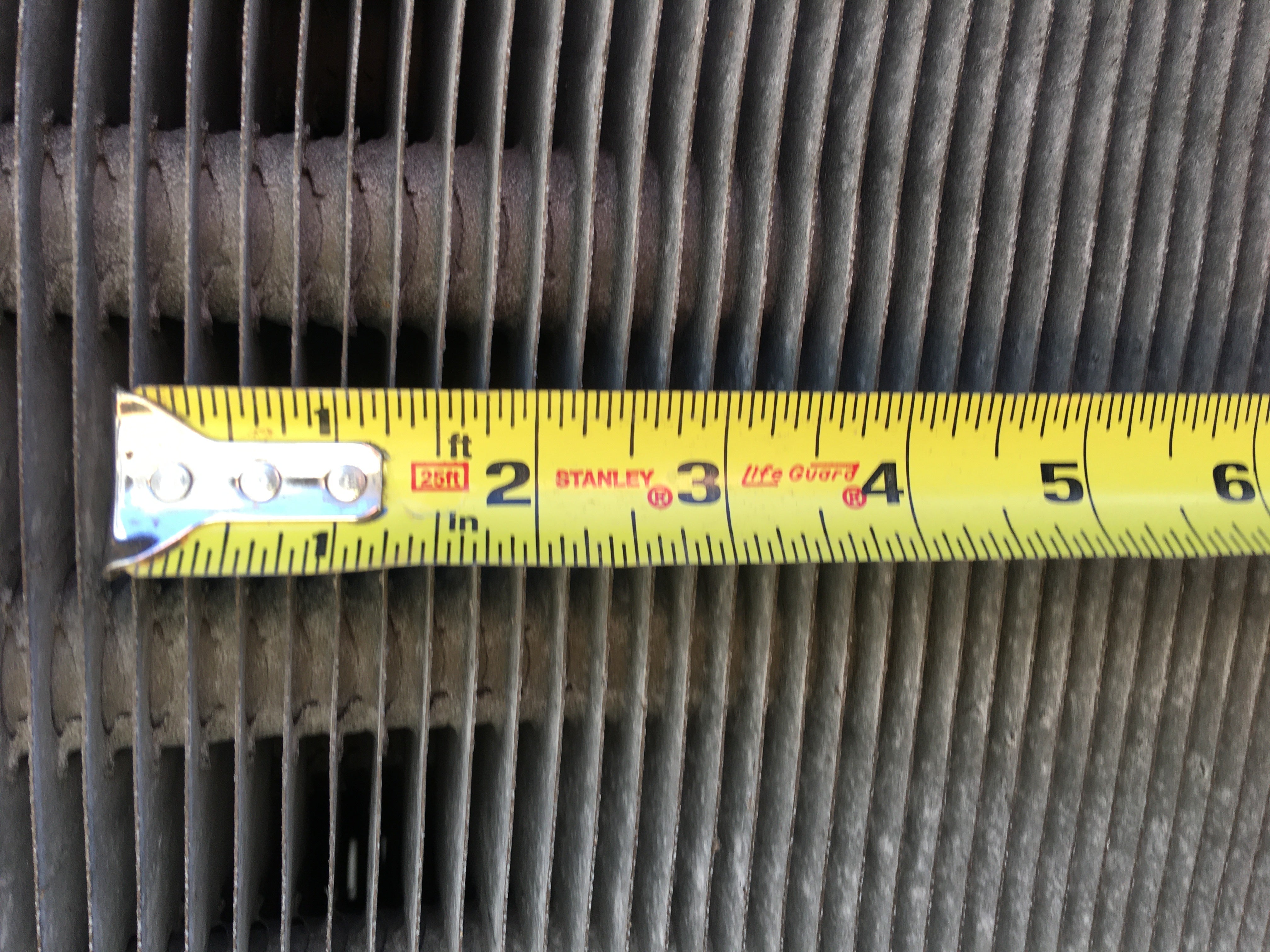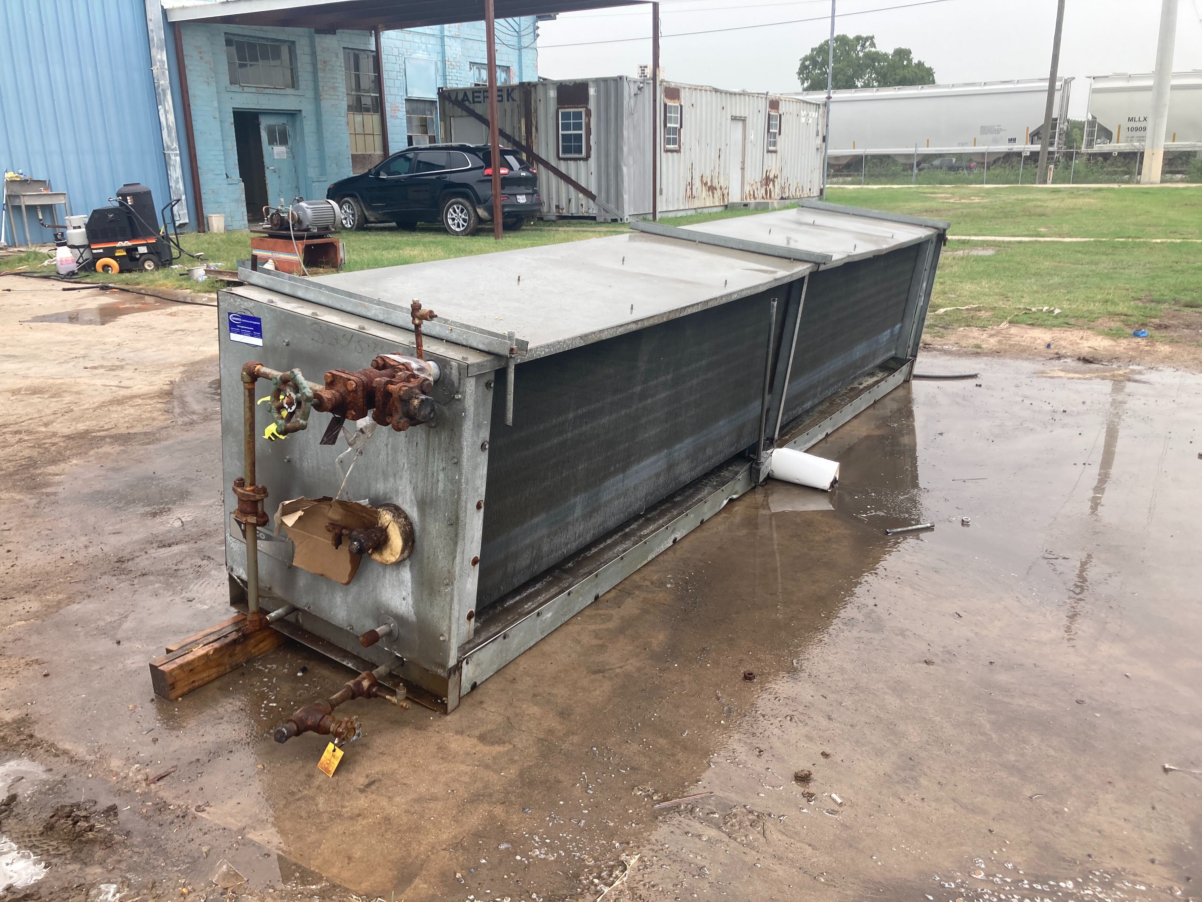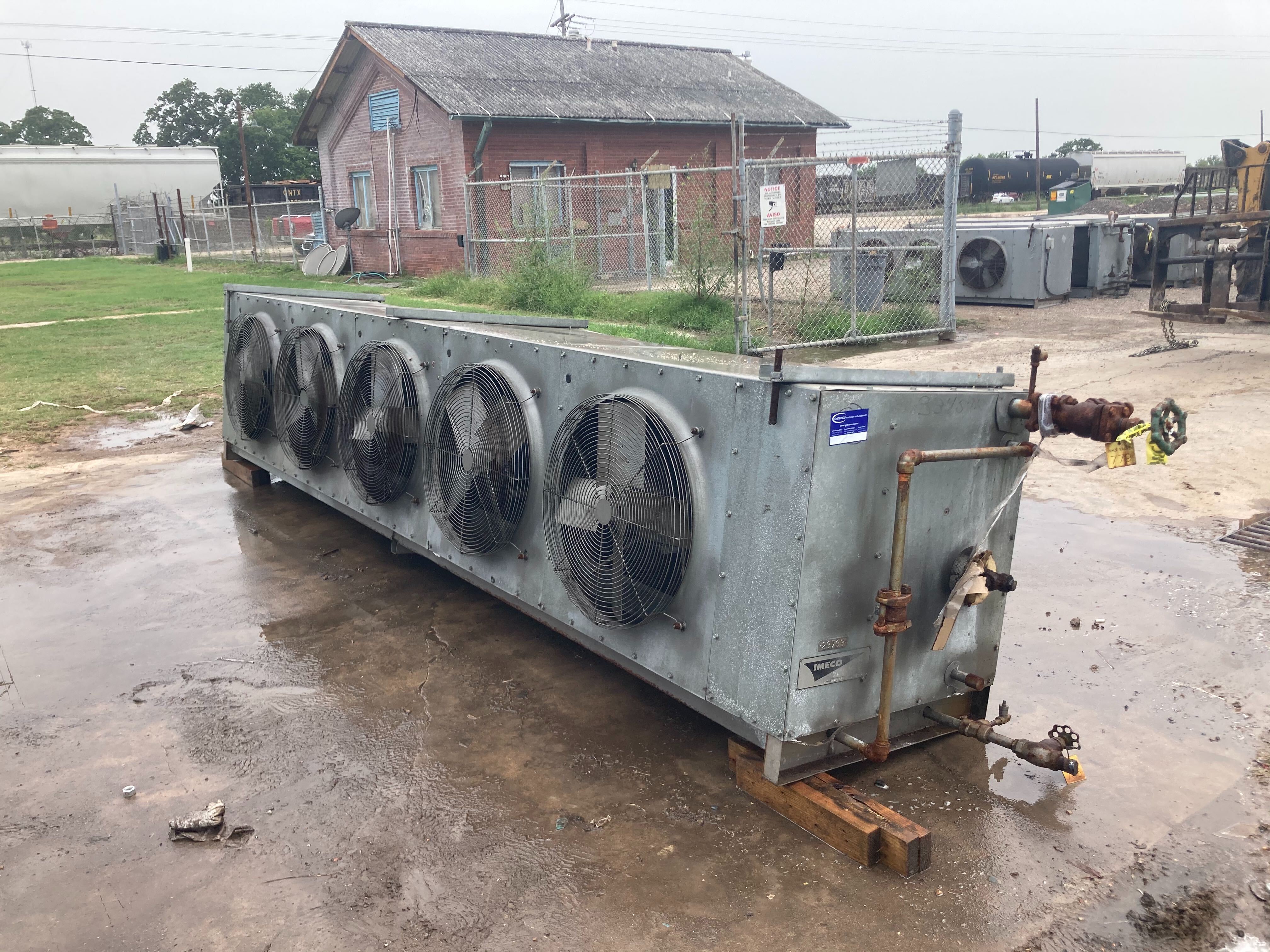 Imeco CO-324-44 Serpentín evaporador de amoníaco -9TR, 3 ventiladores (baja temperatura) Este evaporador funciona con serpentines esmerilados de baja temperatura. Tiene una capacidad de 7350 (BTUH / °F TD) con un tonelaje estimado de 9(TR) @15TD. Un flujo de aire de 13340 CFM. Utiliza serpentines recirculados de alimentación superior con un sistema de descongelación por gas. Anteriormente funcionaba con amoníaco, pero es comparable al freón. Este paquete también incluye 3 motores de ventilador de 0,3 HP.
