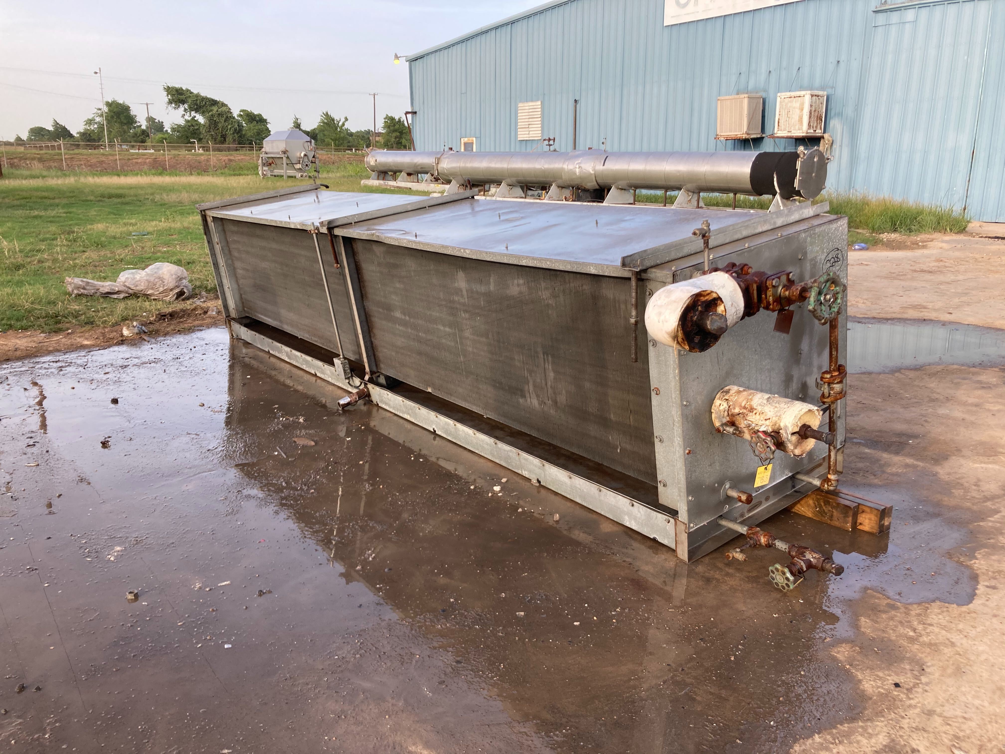 Imeco CO-324-44 Serpentín evaporador de amoníaco -9TR, 3 ventiladores (baja temperatura) Este evaporador funciona con serpentines esmerilados de baja temperatura. Tiene una capacidad de 7350 (BTUH / °F TD) con un tonelaje estimado de 9(TR) @15TD. Un flujo de aire de 13340 CFM. Utiliza serpentines de alimentación superior recirculados con un sistema de descongelación por gas. Anteriormente funcionaba con amoníaco, pero es comparable al freón. Este paquete también incluye 3 motores de ventilador de 0,3 HP.