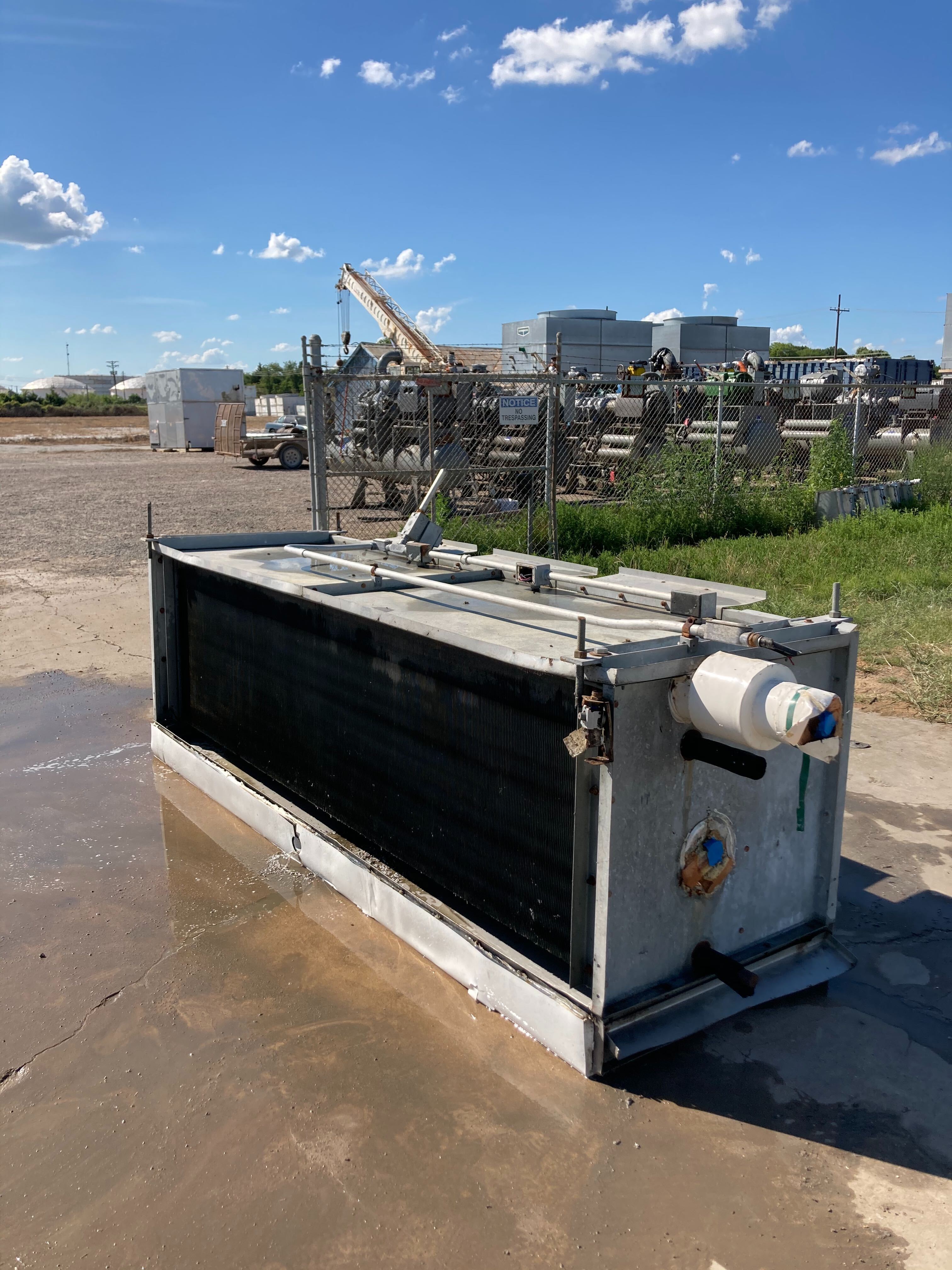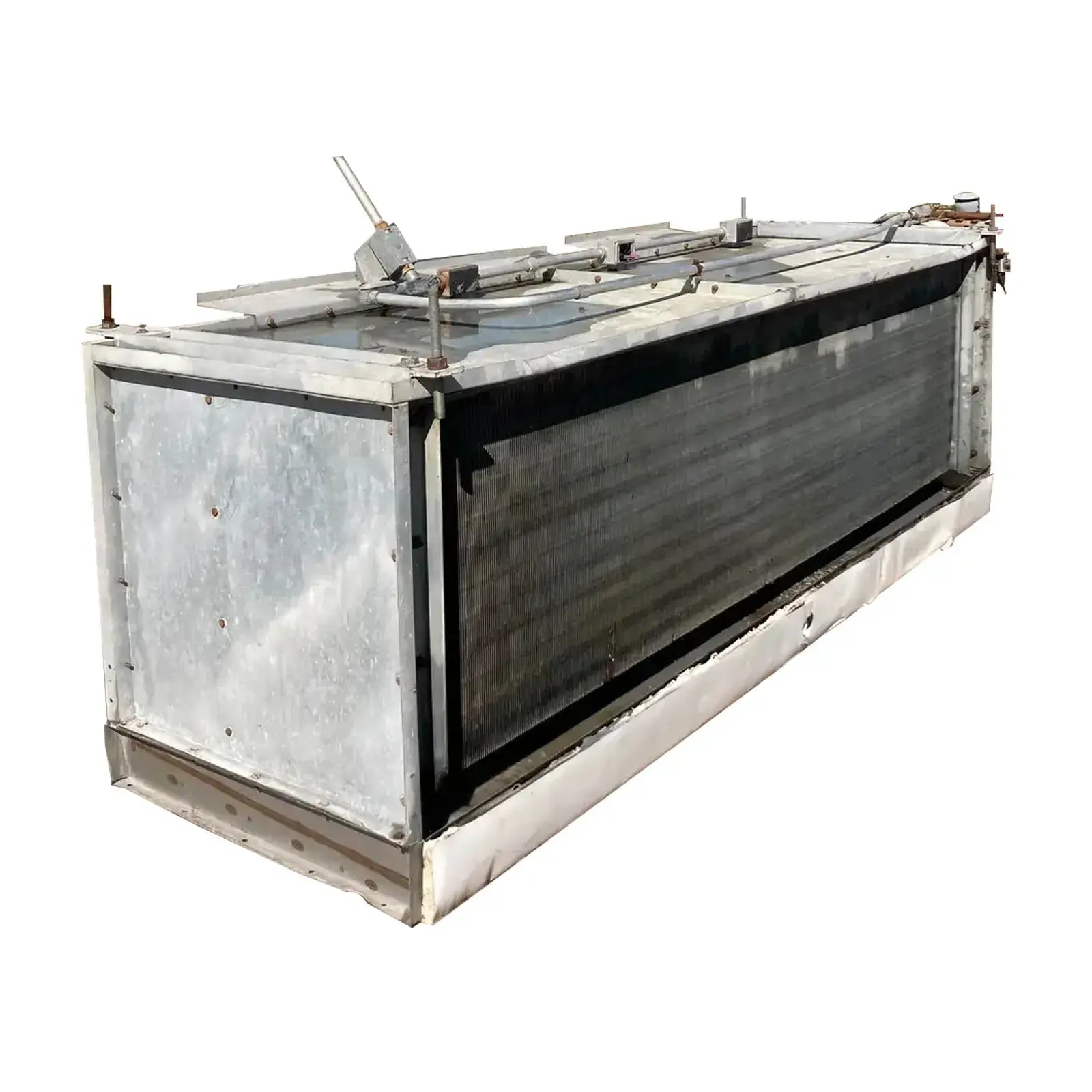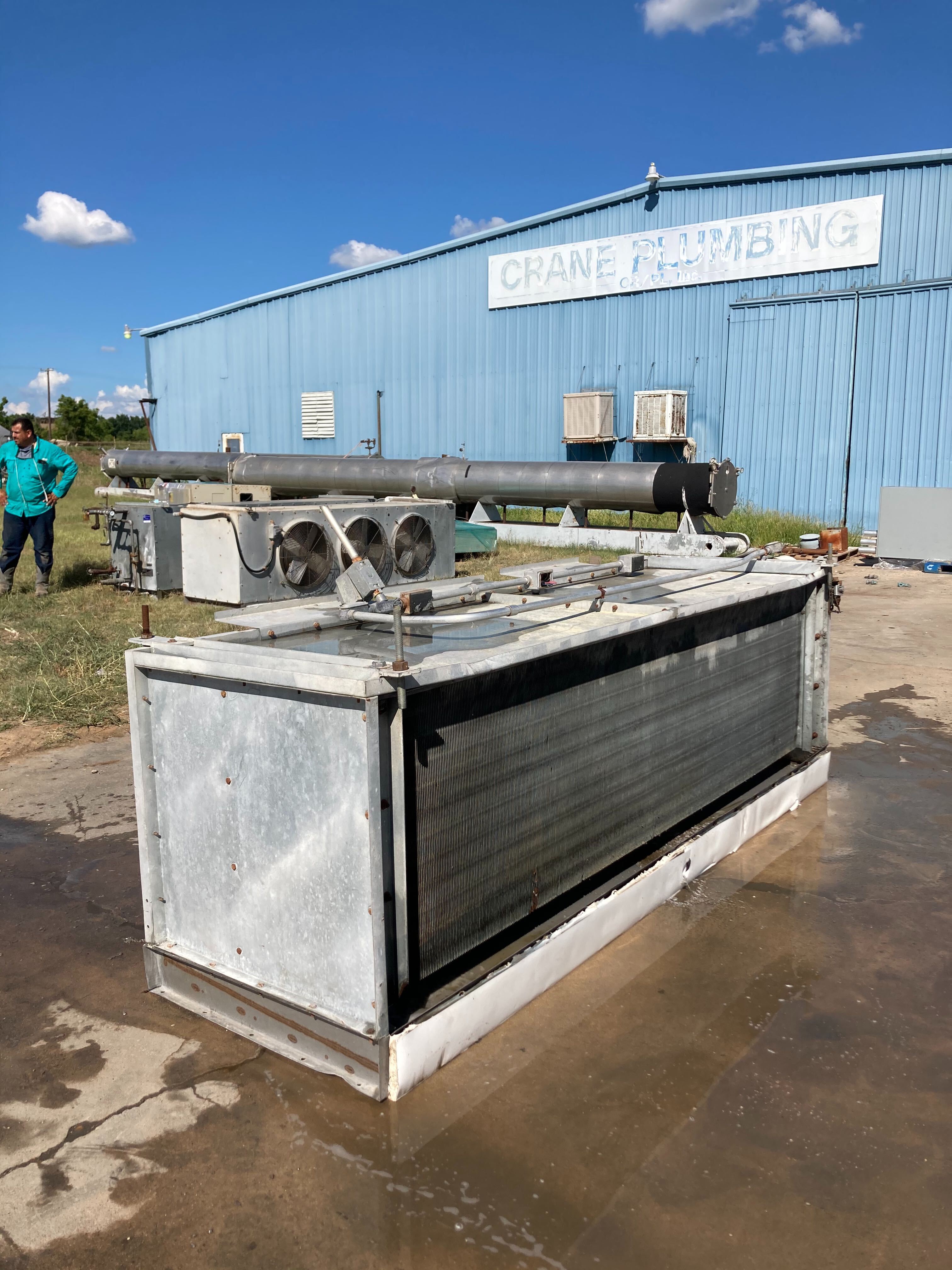 Imeco CO-324-44 Serpentín evaporador de amoníaco -9TR, 3 ventiladores (baja temperatura) Este evaporador funciona con serpentines esmerilados de baja temperatura. Tiene una capacidad de 7350 (BTUH / °F TD) con un tonelaje estimado de 9(TR) @15TD. Un flujo de aire de 13340 CFM. Utiliza serpentines recirculados de alimentación superior con un sistema de descongelación por gas. Anteriormente funcionaba con amoníaco, pero es comparable al freón. Este paquete también incluye 3 motores de ventilador de 0,3 HP.
