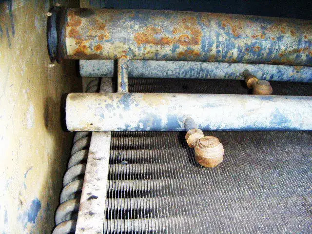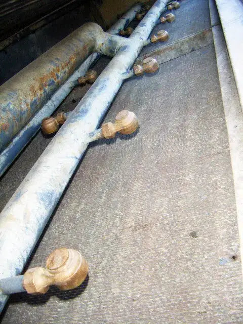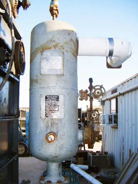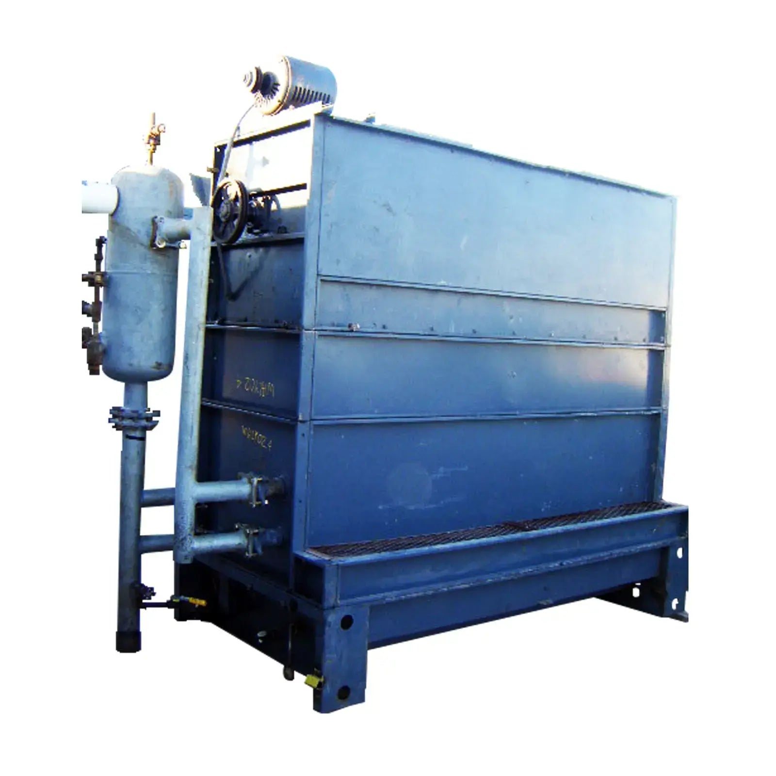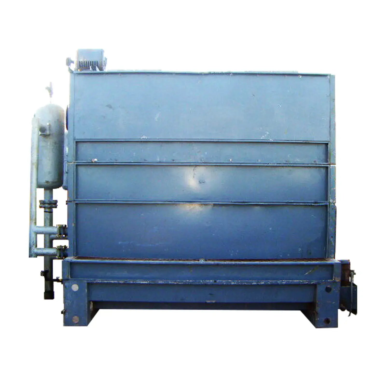 Evaporador enfriador por pulverización Niagara No-Frost. Modelo: 606. Refrigerante: usado por última vez con R-717 (amoniaco). (2) Ventiladores centrífugos. Motor Lincoln, 7,5 hp, 1450 rpm, 21/10,5 amperios, 208-230/460 V, 60 Hz, trifásico. Motor de bomba estadounidense: 3450 rpm, 2,7/1,35 amperios, 220/440 V, 60 Hz, trifásico. Proceso: Los ventiladores centrífugos extraen aire a través de un serpentín con circulación de refrigerante. El serpentín se rocía continuamente con una solución de glicol que elimina la humedad del aire que pasa a través del serpentín, lo que evita la acumulación de escarcha. Utilizado anteriormente en un congelador de lonja. Entradas: (2) 4 pulg. de diámetro. puertos, (1) 2 pulg. de diámetro. puerto, (1) 3 pulg. de diámetro. puerto. Salidas: (2) 4 pulg. de diámetro. puertos, (1) 2 pulg. de diámetro. puerto. Dimensiones totales: 14 pies x 2 pulgadas de largo x 5 pies de ancho x 10 pies 8 pulgadas de alto.