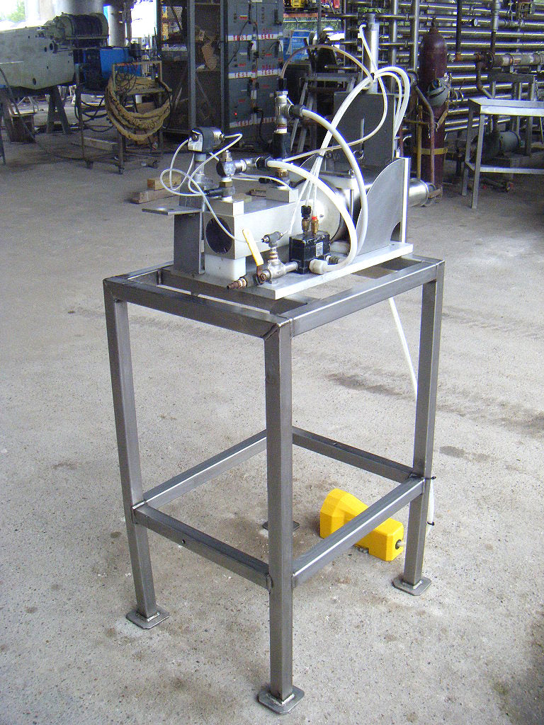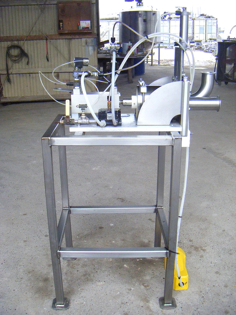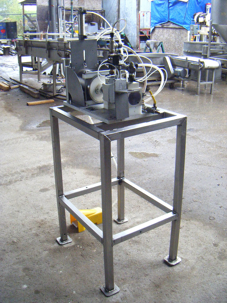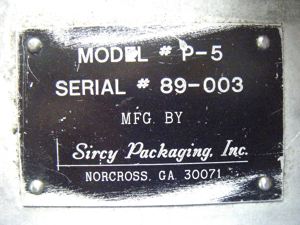 Sircy Packaging Inc. Llenadora volumétrica de pistón, 1 galón. Modelo: P-5. Número de serie: 89-003. (1) Interruptor de pedal ARO. Entradas/salidas: (2) Línea S de 2-1/2 pulgadas. Dimensiones totales: 2 pies 10 pulgadas de largo x 1 pie 9-3/4 pulgadas de ancho x 4 pies 11 pulgadas de alto.