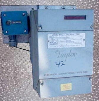 Sistema de caudalímetro Taylor Mag-Pipe. Número de serie: 1100LK0211-121-8883A. Presión máxima de trabajo: 275 PSI @ 104 F. Fuente de alimentación: 117 V, 60 Hz. Entradas/salidas: 2 pulg. de diámetro. Línea S. Dimensiones totales: 13 pulgadas de largo x 12-1/2 pulgadas de ancho x 21 pulgadas de alto. Transmisor Taylor Micro-Mag. Número de serie: 1103TK24000-1-879B. Fuente de alimentación: 117 V, 24 VA, 60 Hz. Medidor Hobbs y pantalla digital. Dimensiones totales: 13 pulgadas de largo x 8-1/4 pulgadas de ancho x 15 pulgadas de alto. Controlador neumático Foxboro. Modelo: 43A-A4. S/N: 2735400. Rango: 30 pulg. Hg Vac y 0-10 psi. Dimensiones totales: 10-1/2 pulgadas de largo x 6 pulgadas de ancho x 12 pulgadas de alto (ACN30).
