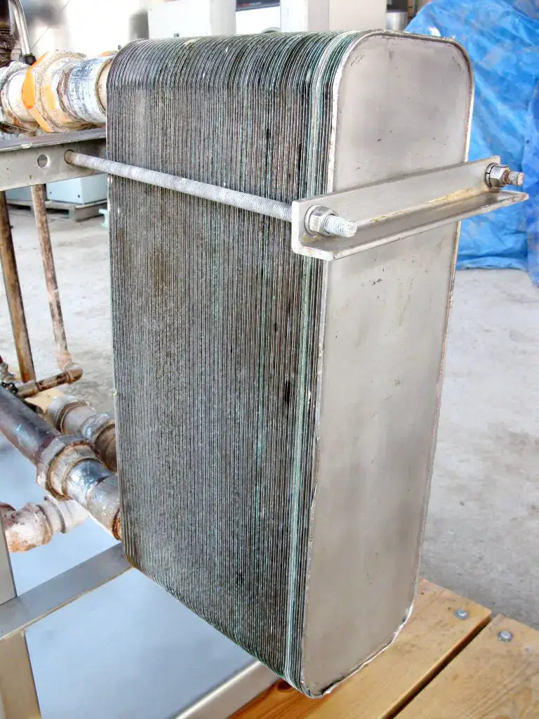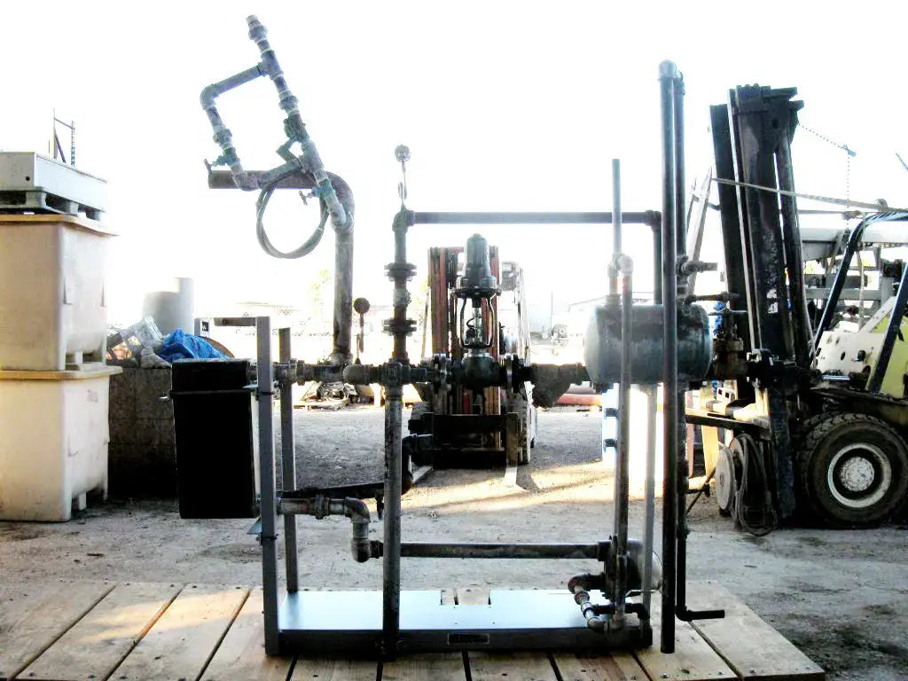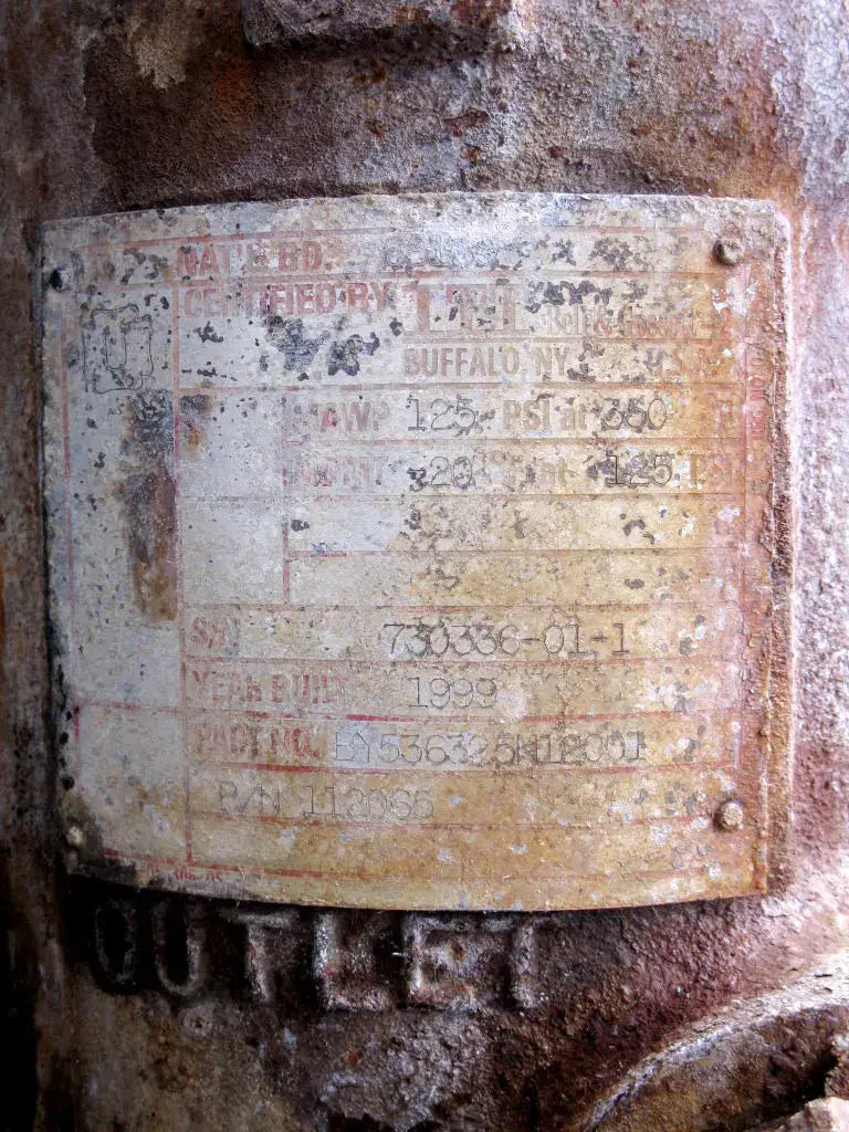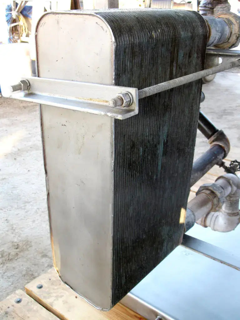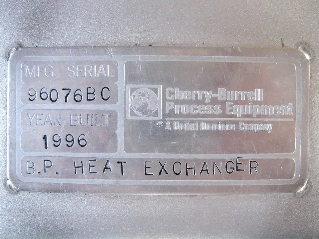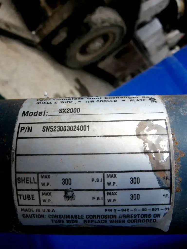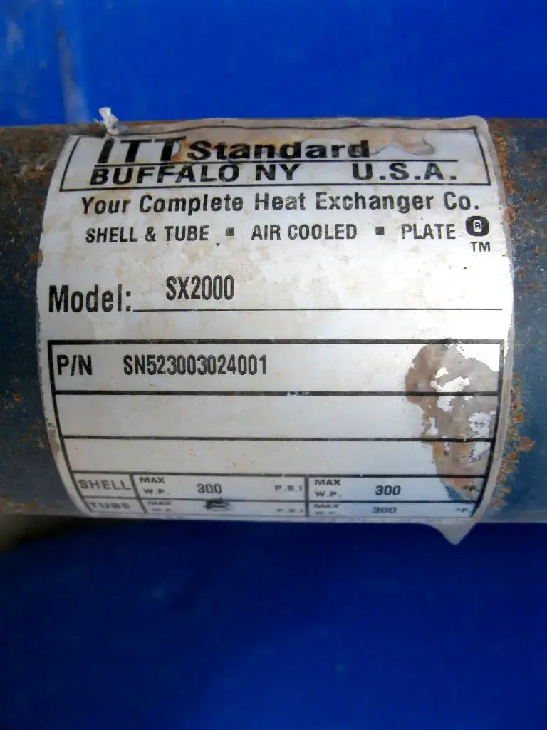 Sistema intercambiador de calor ITT Bell & Gossett. (100) Placas intercambiadoras de calor total. Dimensiones totales de la placa: 7-1/2 pulgadas de ancho x 2 pies ½ pulgadas de alto. Área de superficie de transferencia de calor por placa: 6 pulgadas de ancho x 23 pulgadas de alto. Área de superficie total de transferencia de calor: 95,83 pies cuadrados Tanque separador: 11 pulgadas de diámetro. x 1 pie 1 pulgada de pared recta (6 galones). (1) Válvula de control Lin-E-Aire. Rango: 3 a 15 PSI. Clasificación corporal 250 PSI. Entradas/salidas: (1) puerto de 2-1/2 pulg., (1) FNPT de 1 pulg., (1) FNPT de ¾ pulg. Dimensiones totales: 7 pies 10 pulgadas de largo x 2 pies 9 pulgadas de ancho x 7 pies de alto.