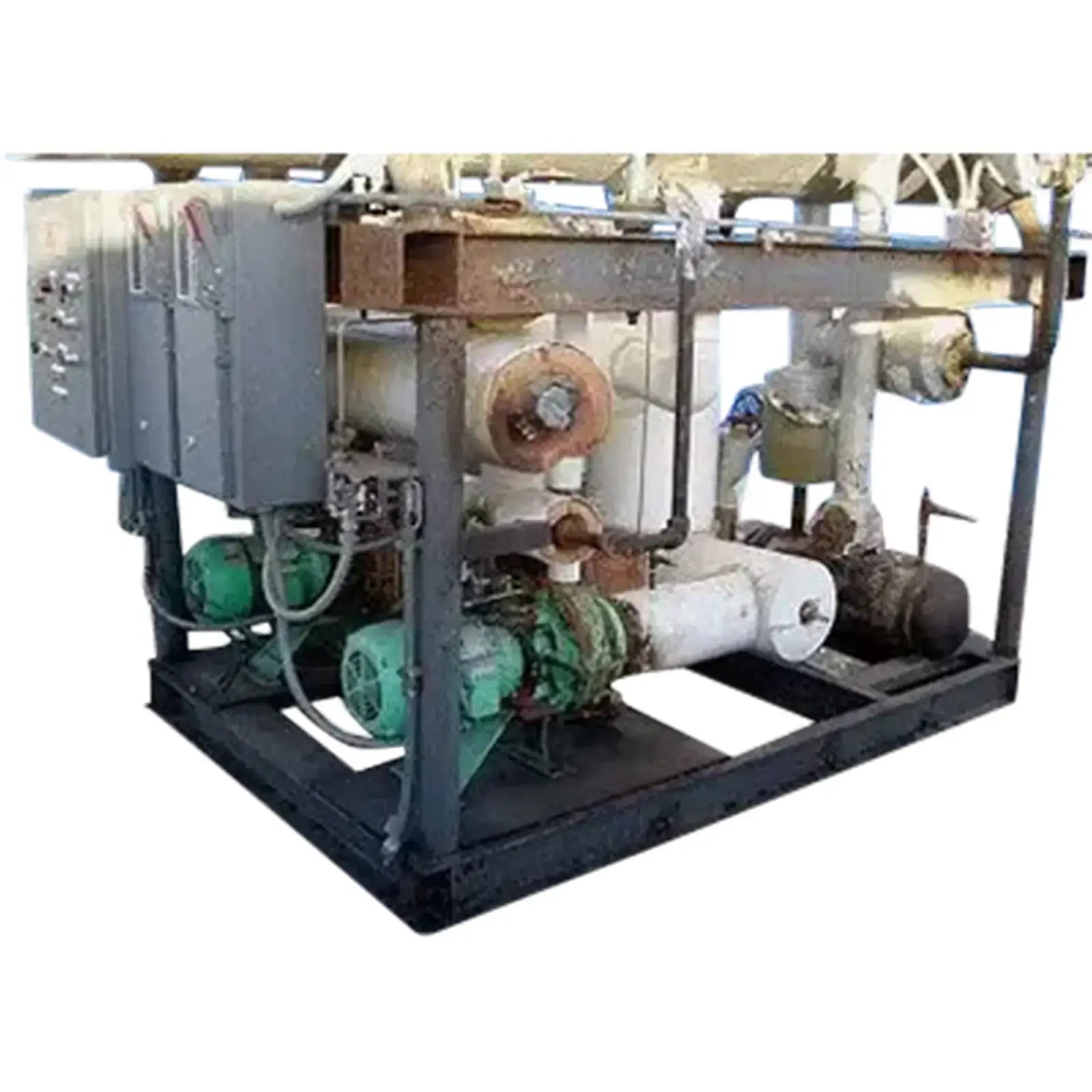 Sistema de recirculación de amoníaco a baja temperatura FES, 42 pulgadas x 10 pies. Nat'l Bd: 1113. MAWP a 300 °F: 150 psi. MDMT a 260 psi: -50 °F. Diámetro del tanque: 42 pulg. Longitud del tanque: 115 pulg. Aislamiento: 6 pulg. (cabeza); 3 pulgadas (barril). Radio de la cabeza: 2:1. Espesor de la cabeza: 0,312 pulg. Espesor de la carcasa: 0,312 pulg. (2) Bombas centrífugas de recirculación de líquidos Cornell, modelo: 2 CB-5-4, S/N: 85137 y 85138. (2) Motores industriales Baldor, 3/5 hp, 1470/1760 rpm, 190/380-230/460 V, 11/5,5-13,6/6,8 amperios, 50/60 Hz, trifásico. Entradas: (1) 6 pulg. de diámetro. puerto, (1) 5-1/2 pulg. de diámetro. puerto. Salidas: (1) 3 pulg. de diámetro. puerto. Dimensiones totales: 12 pies 8 pulgadas de largo x 68 pulgadas de ancho x 9 pies de alto.