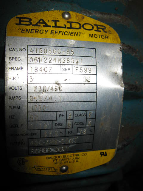 - Si hay varios motores, descripciones de motores frente a especificaciones: (1) 2 hp Baldor Motor and (1) 3 hp Baldor Motor
