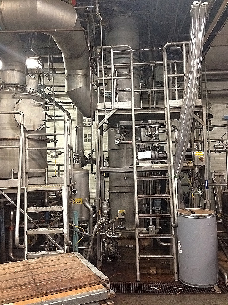 Sistema de Recuperación de Esencias APV. Utilizado anteriormente con un sistema de evaporación de 5 etapas de 3 efectos que eliminaba 30,000 libras por hora de agua de un producto alimenticio en una importante planta procesadora de alimentos de EE. UU.
