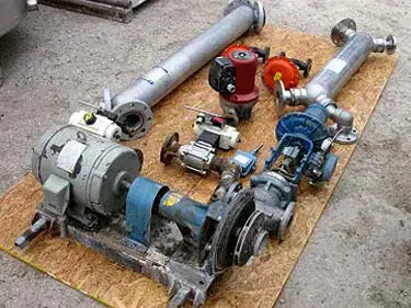 Sistema de regeneración de filtros de carbón Secespol. Intercambiador de calor AIC HF (1): No. JADXK650. Número de serie. 03G045010. Año de construcción: 2003. 300 PSI a 422 ºF. Entradas/salidas: (2) 3 pulg. de diámetro interior. brida. (2) 2 pulgadas de diámetro interior. brida. Dimensiones totales: 3 pies 9 pulgadas de largo x 1 pie 8 pulgadas de ancho x 7-1/2 pulgadas de alto. (1) Intercambiador de calor: No. JADXK 6.50.08.72. Número de serie. 02Z0034002. Año de construcción: 2002. 300 PSI a 422 ºF. Entradas/salidas: (4) 3-1/2 pulgadas de diámetro interior. brida. Dimensiones totales: 5 pies 5 pulgadas de largo x 1 pie de ancho x 9 pulgadas de alto. Bomba centrífuga Clarke LTD. Número de modelo: 2595 1 133200. Motor: 10 Hp, 1740 Rpm, 230/460 V, 26/13 A, 60 Hz, Trifásico. (1) 7-1/2 pulg. de diámetro. impulso. (1) 3 pulgadas de diámetro interior. entrada de brida. (1) 2-1/2 pulg. de diámetro interior. salida de brida. Dimensiones totales de la bomba: 3 pies 2-1/2 pulgadas de largo x 2 pies de ancho x 1 pie 4 pulgadas de alto. (1) Válvula de control serie Stabilflo V1: SO no. M73-44095-1/1. (2) 2 pulgadas de diámetro interior. brida. Dimensiones totales: 2 pies 7-1/2 pulgadas de largo x 1 pie 1 pulgada de ancho x 11 pulgadas de alto. (1) Bomba Grundfos. N º de Modelo. A. Número de pieza. 96407030. (2) 1-1/2 pulg. de diámetro interior. brida. Dimensiones totales: 1 pie 1 pulg. de largo x 10 pulg. de ancho x 1 pie 2 pulg. de alto. (2) Modelo de Fisher Controls no. 32-24577C. Rango de banco: 5-15 PSI. Cuerpo: acero WCC. (2) 1 pulgada de diámetro. brida con (4) orificios de montaje de 5/8 pulg. 2-1/4 pulgadas adyacentes, 3-1/4 pulgadas opuestas. Dimensiones totales: 1 pie 2-1/2 pulgadas de largo x 8-3/4 pulgadas de ancho x 9 pulgadas de alto. (2) válvulas El-O-Matic. Tipo: ES 65-4/A. 1 tiene (2) FNPT de 2 pulgadas y el otro tiene (2) 2 pulgadas de diámetro. bridas. Dimensiones totales: 1 pie 1/2 pulg. de largo x 10 pulg. de ancho x 5-1/2 pulg. de alto. (1) Controlador de temperatura: N.º de pieza. B100-120. Rango de operación: 0 a 225 ºF. Dimensiones totales: 10 pulgadas de largo x 5 pulgadas de ancho x 2-1/2 pulgadas de alto.