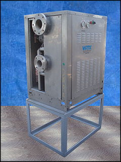 Sistema de tratamiento de agua VRTX™. Modelo: VRTX 125. Capacidad: 125 gph. Se utiliza en combinación con un sistema de filtración de agua para el tratamiento de agua no químico de torres de enfriamiento abiertas o condensadores evaporativos. Las ventajas de utilizar el sistema VRTX™ incluyen el control de bacterias, corrosión y acumulación de sarro en esos sistemas de agua. Bomba centrífuga G&L: tamaño: 1,5 x 2,5 x 8. Motor industrial Baldor, 15 hp, 208-230/460V, 3450 rpm, 60Hz, trifásico. Dimensiones totales: 3 pies 4 pulgadas de largo x 2 pies 3 pulgadas de ancho x 4 pies 4 pulgadas de alto (ACN316).