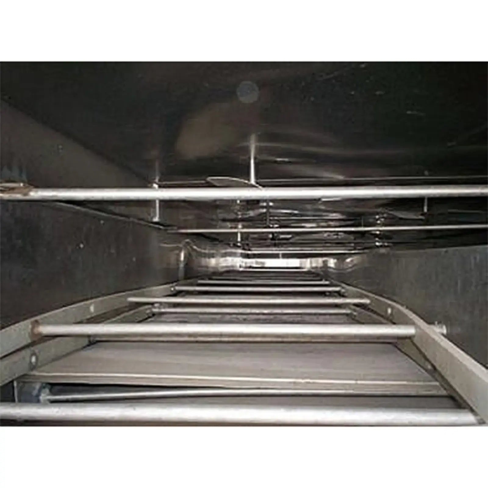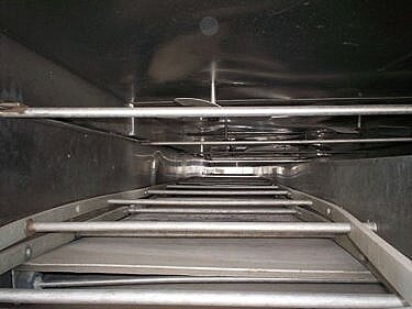 Sistemas Integrados de Procesos Túnel IQF de Criotransferencia. Modelo: CK. Número de modelo: 71142-CK2004. Proceso de congelación instantánea con nitrógeno líquido. Espacio libre del producto: 48 pulgadas de ancho x 7-1/2 pulgadas de alto. Ancho de la correa: 24 pulgadas. Utiliza (8) 16 pulgadas de diámetro. ventiladores de refrigeración con motores Reliance, 1/2 hp, 1725 rpm, 230/460 V, 2,2/1,1 amperios, 60 Hz, trifásicos. (2) Motores de transportador eléctrico Reliance, 1-1/2 hp, 1725 rpm, 230/460 V, 6,4/3,2 amperios, 60 Hz, trifásicos. Reese RV Drive, relación de transmisión: 70, velocidad final: 60 rpm. (2) 12 pulgadas de diámetro. Sopladores uno con motor. Cubiertas elevables asistidas por pistón. Altura de entrada del transportador: 45 pulgadas. Altura de salida del transportador: 40 pulgadas. Dimensiones totales: 53 pies 5 pulgadas de largo x 89 pulgadas de ancho x 77 pulgadas de alto.