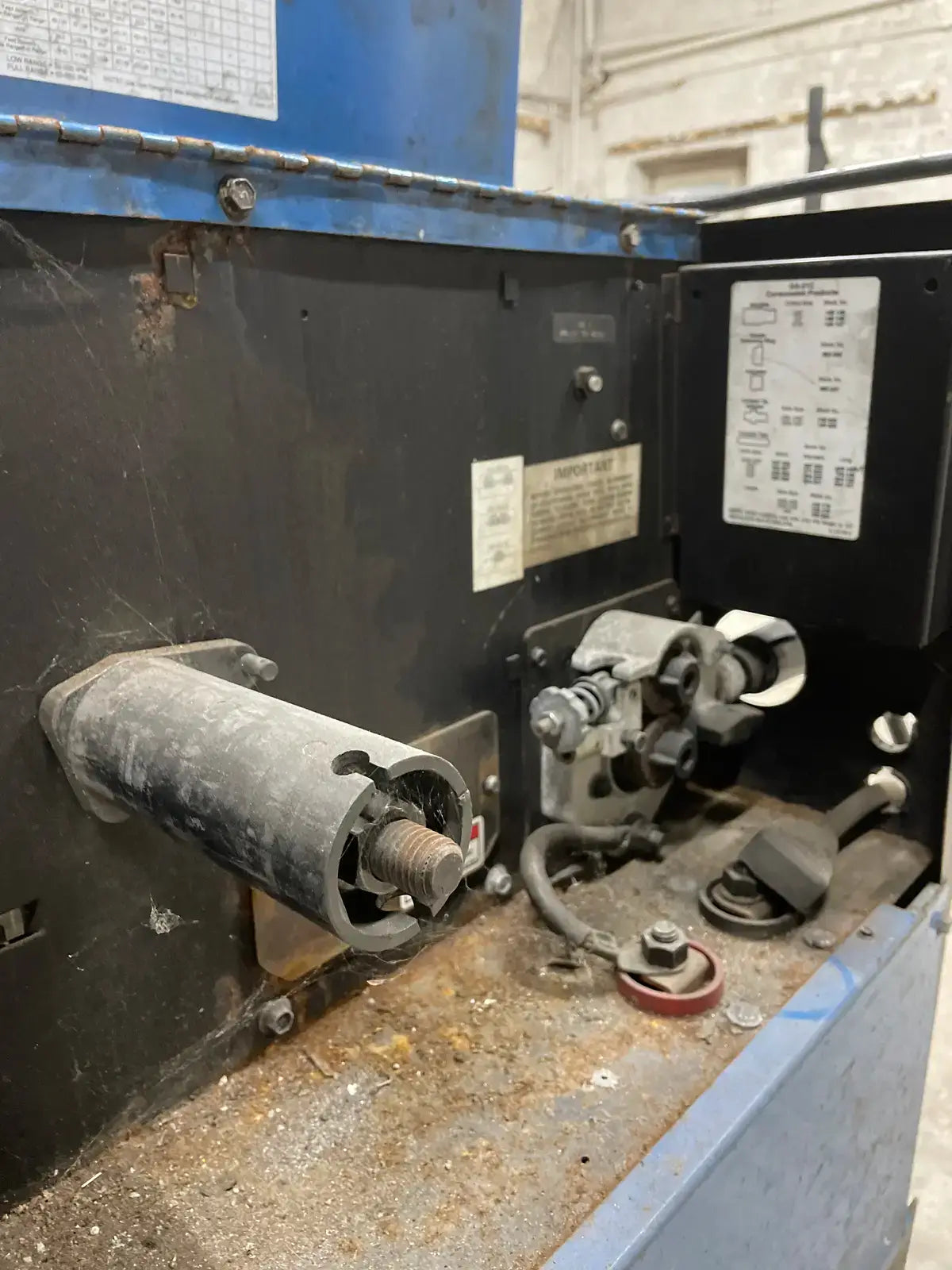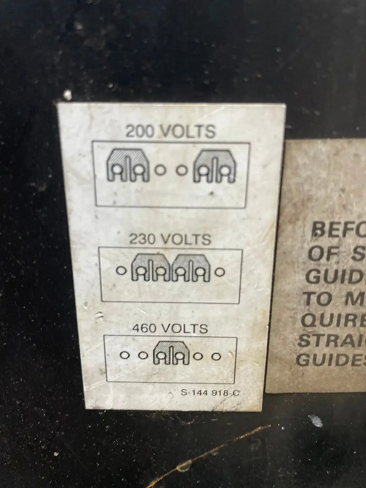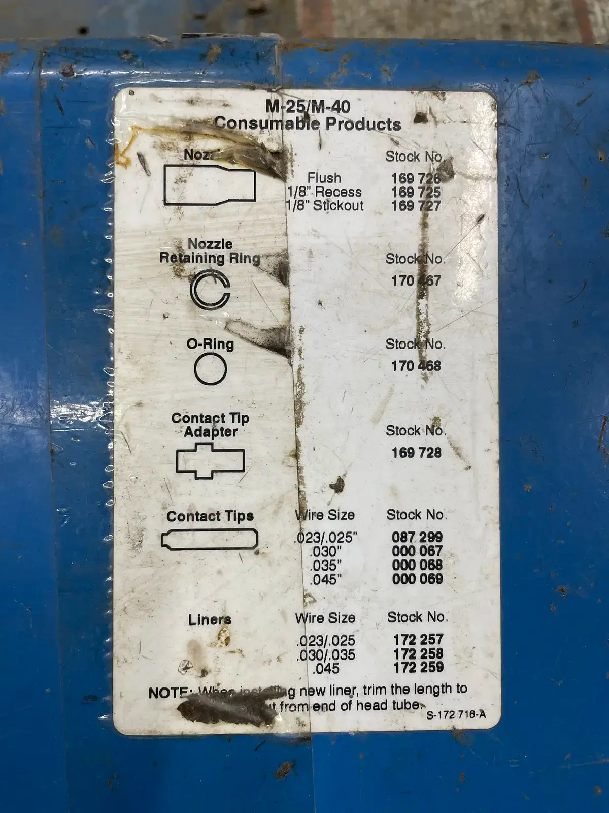 Fuente de alimentación/alimentador de alambre para soldadura por ARCO Millermatic 250 CV-DC - No. de serie: KF797845, No. de inventario: 903291. Procesos: soldadura por arco metálico con gas (MIG), soldadura por arco con núcleo fundente (FCAW). Fuente de energía para soldadura por arco y alimentador de alambre. Entrada nominal: Voltios: 200/230/460, Amperios: 50/44/22, KW: 7,7, Fase: 1, Hercios: 60. Salida nominal: Voltios: 28, Amperios: 200, Ciclo de trabajo: 60%, OCV máx. : 34, (clasificación máxima) NEMA Clase 1 (60)