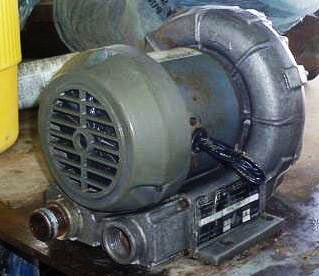 Soplador de gases. S/N: 0785. Motor, 1/3 hp, 3450 rpm, 208-230/460 V, 1.2-1.2/0.6 amperios, 60 Hz, trifásico. Entradas/salidas: (2) 1-1/2 pulg. de diámetro. Dimensiones totales: 9-1/2 pulgadas de largo x 8-1/2 pulgadas de ancho x 9-1/2 pulgadas de alto.