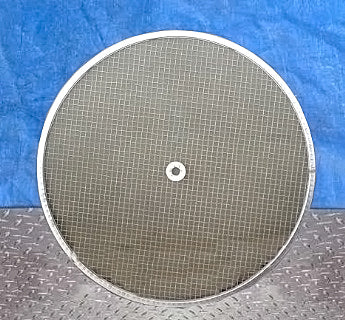 Sweco 58 pulgadas. Criba de cubierta de tamiz de acero inoxidable. Pantalla de 1 malla con 1-3/4 pulg. de diámetro. agujero central. Dimensiones totales: 58 pulgadas de diámetro x 1-1/2 pulgadas de alto.
