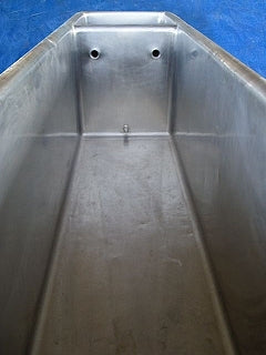 Tanque COP: 200 galones. Acero inoxidable. Tanque de dos compartimentos. Entradas/salidas: (1) 3/4 pulg. de diámetro. NPT (hembra), (1) 1-1/2 pulg. de diámetro, (2) NPT 1-1/2 pulg. de diámetro. Accesorio amenazado, (1) 1/2 pulg. de diámetro. Salidas: (1) 1-1/2 pulg. de diámetro. accesorio roscado, (1) virola hembra de 2 pulg. (tanque). Dimensiones interiores primer compartimento: 72 pulgadas de largo x 20-1/2 pulgadas de ancho x 23 pulgadas de alto. Segundo compartimento 24 pulgadas de largo x 20-1/2 pulgadas de ancho x 23 pulgadas de alto. Dimensiones totales: 8 pies 3 pulgadas de largo x 28 pulgadas de ancho x 43 pulgadas de alto.