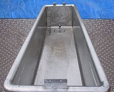 Tanque COP con pulverizador de chorro de acero inoxidable, 100 galones. Dimensiones interiores: 74-1/2 pulgadas de largo x 20-1/4 pulgadas de ancho x 18 pulgadas de alto Entradas: (1) conector NPT hembra de 2 pulgadas, (1) conector NPT macho de 1 pulgada, (1) Conector NPT hembra de 1 pulg. Salida: (2) accesorios S-line de 1-1/2 pulg., (1) conector S-line de 2-1/2 pulg. Motor eléctrico Ampco, modelo: ZC 2-1/2 x 2, S/N: 0354-047, 5 hp, 3500 rpm, 208-220/460 V, 14-13.4/6.7 amperios, 60 hz, trifásico. Dimensiones totales:. 81-1/2 pulgadas de largo x 26-1/2 pulgadas de ancho x 38-1/2 pulgadas de alto.