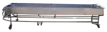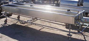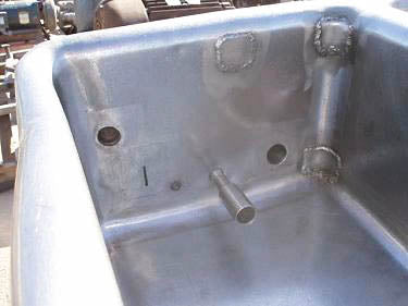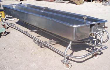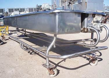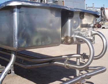 Tanque COP de 2 compartimentos de acero inoxidable: 200 galones (total). Dimensiones interiores de pared recta (cada una): 12 pies 2-1/2 pulgadas de largo x 1 pie 4 pulgadas de ancho x 11 pulgadas de alto. Equipado con (2) 1/8 pulgadas de ancho x 1-1 Chorros de pulverización H de /2 pulg. Entradas: (2) 1-1/2 pulg. de diámetro. puertos, (1) 1 pulg. de diámetro. Accesorio FNPT, (1) conector FNPT de 1/2 pulg., (1) diámetro de 1-1/4 pulg. Conexión FNPT. Salidas: (2) 2 pulg. de diámetro. Accesorios NPT. Dimensiones totales: 13 pies 9 pulgadas de largo x 3 pies 6-1/2 pulgadas de ancho x 3 pies 5-1/2 pulgadas de alto.