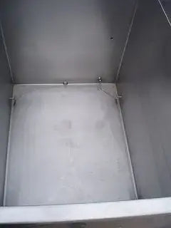 2000 Tanque de cocción/enfriamiento con camisa Paul Mueller: 560 galones. Número de serie: 255613-3. Nat'l Bd: 31258. Dimensiones interiores de pared recta: 5 pies de largo x 3 pies 6 pulgadas de ancho x 4 pies 4 pulgadas de alto. Número de tubos de calor/frío: 11. Dimensiones de los tubos: 1-1/ 4 pulgadas de diámetro. x 3 pies 6 pulgadas L. Volumen del tubo: 2,5 gal. MAWP: 90 psi a 400 °F, MDMT: 30 °F a 90 psi. Entradas: (1) 1 pulg. de diámetro. puerto (chaqueta), (1) 5 pies de largo x 3 pies 6 pulgadas de ancho (entrada de producto). Salidas: (1) 1 pulg. de diámetro. puerto (chaqueta), (2) 1- 1/2 pulg. de diámetro. Accesorios FNPT, (1) 1 pulg. de diámetro. Accesorio FNPT, (1) 3/4 pulg. de diámetro. puerto, (1) 2 pulg. de diámetro. Conexión de línea S. Dimensiones totales: 7 pies 5 pulgadas de largo x 4 pies 7 pulgadas de ancho x 5 pies 1 pulgada de alto. NOTA: Esta unidad no pasó la prueba de presión. La chaqueta gotea.