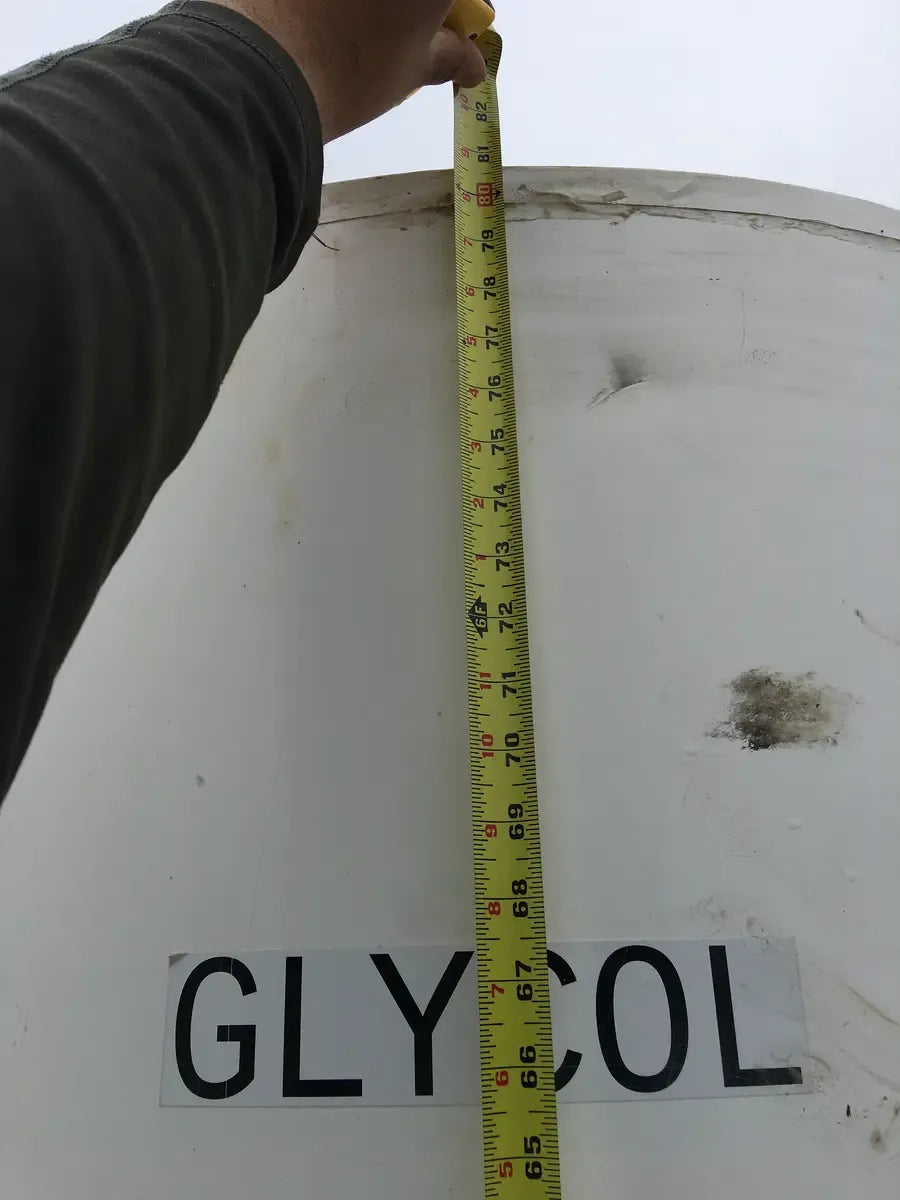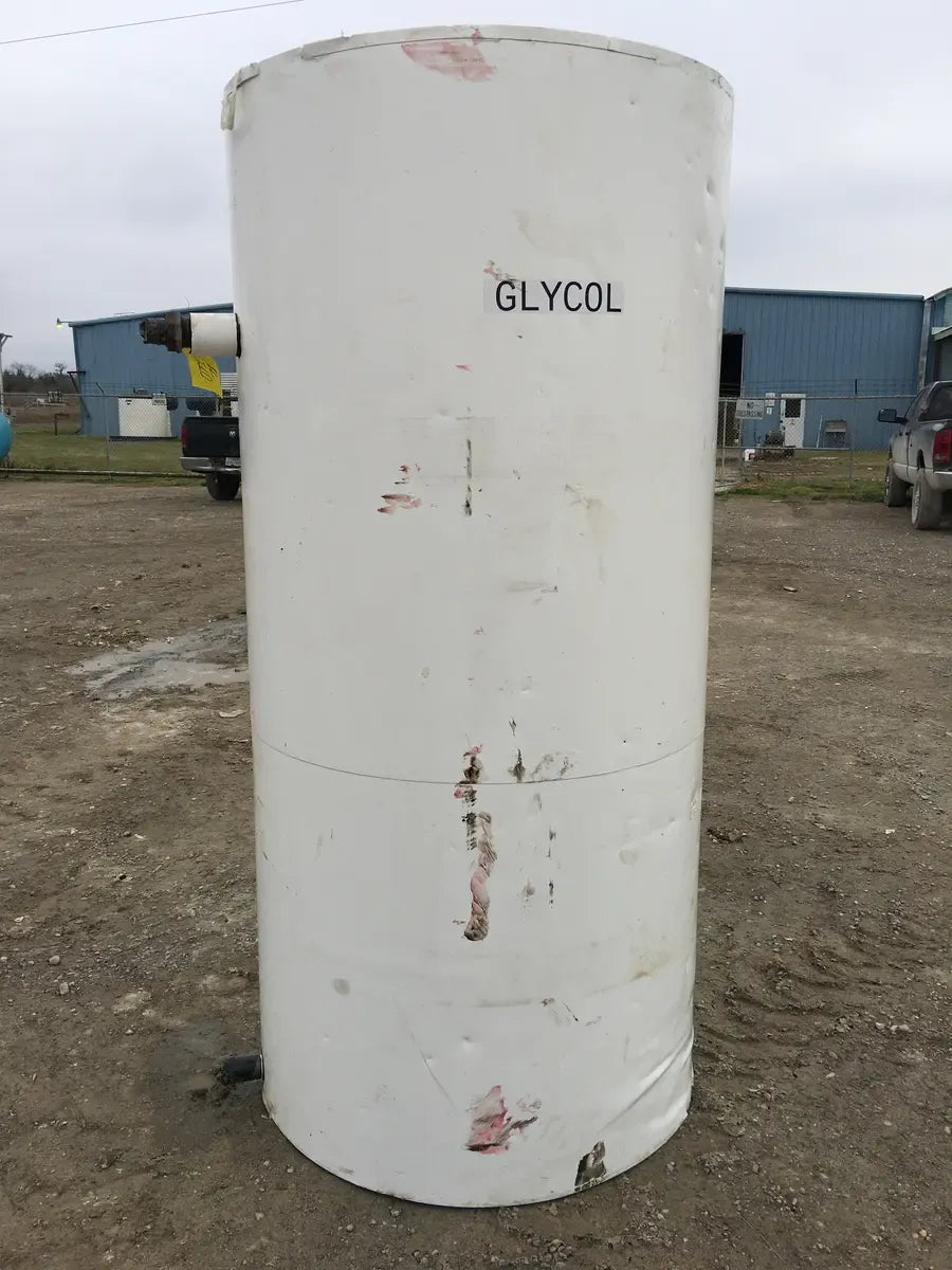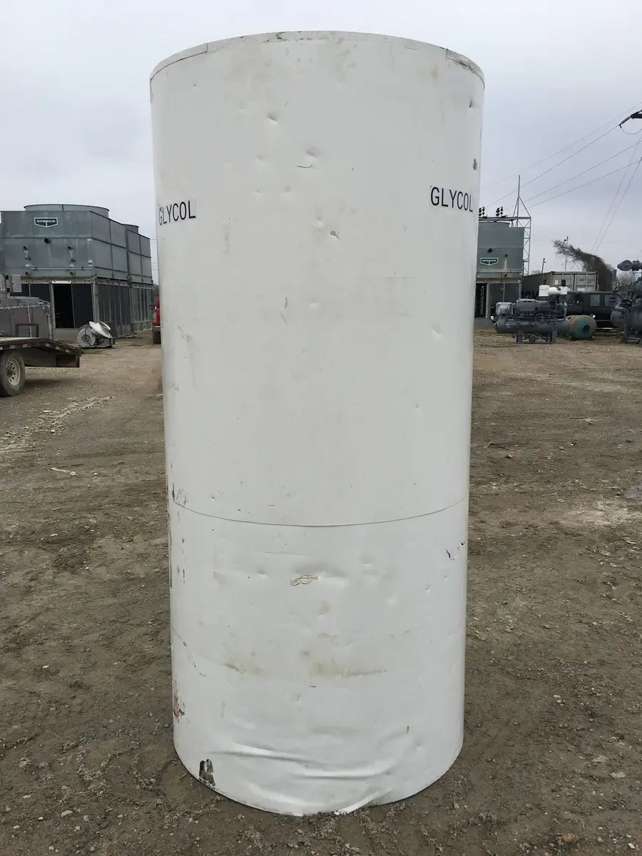 Tanque de almacenamiento de líquidos estacionario de color Blanco Natural. Los tanques de almacenamiento verticales se utilizan en una variedad de industrias, incluidas aplicaciones de almacenamiento de productos químicos industriales, agrícolas y comerciales. Este tanque de almacenamiento vertical de plástico está construido con resina de polietileno moldeada rotacionalmente. Su construcción sin costuras lo hace duradero y resistente a grietas, astillas y roturas. Gylcol previamente almacenado. Insultado con espuma para protección.