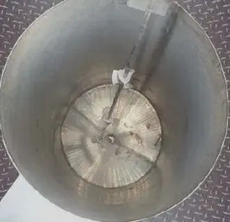 Tanque de carcasa única: 20 galones. Dimensiones interiores: 15 pulgadas de diámetro, 25 pulgadas de alto. Salidas de 1 pulg. 3 patas de 22-½ pulg. (con bases ajustables). Mezclador hidráulico con agitador. GAST, Modelo 4AM-NRN-92, S/N 1093. Dimensiones totales: 18 pulgadas de ancho, 25-½ pulgadas de largo, 63 pulgadas de alto.