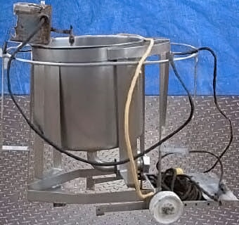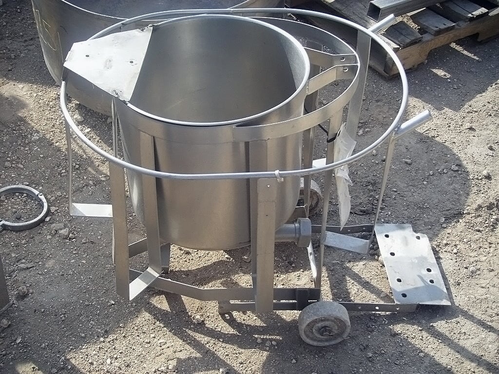 Tanque de carcasa única con parte superior abierta. Dimensiones interiores 14 pulgadas de diámetro, 12 pulgadas de alto. Salidas de 1-½ pulgadas, carcasa única con flotador de nivel. El marco tiene 2 ruedas (paralelas). Dimensiones totales 22 pulgadas de ancho x 30 pulgadas de largo x 26-½ pulgadas de alto.