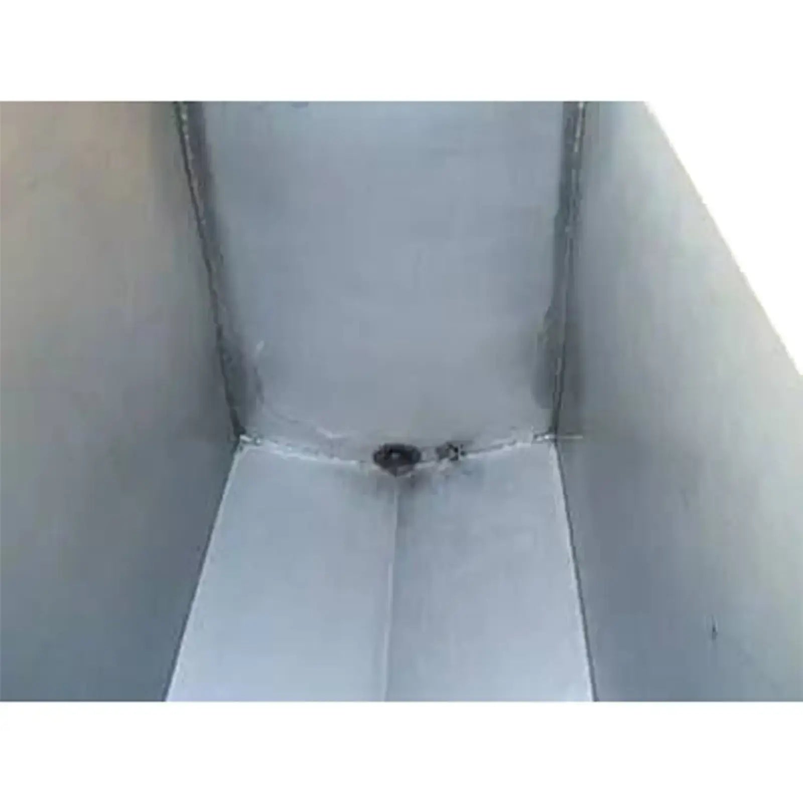 Tanque de carcasa única de acero inoxidable: 100 galones. Construcción de acero inoxidable 304. Dimensiones interiores: 4 pies de largo x 1 pie 7-1/2 pulgadas de ancho x 2 pies 4-1/2 pulgadas de alto. Entradas: parte superior abierta. Salidas: (1) 2 pulg. de diámetro. puerto. (1) 1 pulg. de diámetro. puerto (indicador de nivel). Dimensiones totales: 4 pies 11 pulgadas de largo x 1 pie 10 pulgadas de ancho x 3 pies 11 pulgadas de alto.