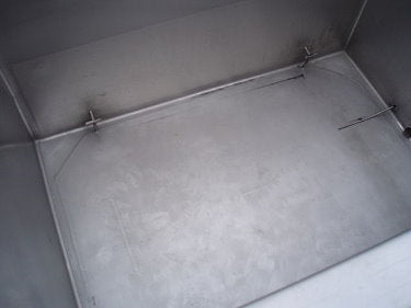 Tanque de cocción/enfriamiento con camisa Mueller 2000: 560 galones. Número de serie: 255613-1. Nat'l Bd: 31256. Dimensiones interiores de pared recta: 5 pies de largo x 3 pies 6-1/2 pulgadas de ancho x 4 pies 3-1/2 pulgadas de alto. Número de tubos de calor/frío: 11 Dimensiones del tubo: 1-1/4 pulg. de diámetro. x 3 pies 7 pulgadas L. Volumen del tubo: 2,5 galones. MAWP: 90 psi a 400°F. MDMT: 30°F a 90 psi. Entradas: (1) 1 pulg. de diámetro. puerto (chaqueta), (1) 5 pies de largo x 3 pies 6-1/2 pulgadas de ancho (entrada de producto). Salidas: (1) 2 pulg. de diámetro. Puerto de drenaje S-line. (1) 1 pulg. de diámetro. puerto (chaqueta), (1) 1 pulg. de diámetro. Accesorio FNPT, (2) 1-1/2 pulg. de diámetro. Conexiones FNPT, (1) 3/4 pulg. de diámetro. puerto. Dimensiones totales: 6 pies 6 pulgadas de largo x 4 pies 7-1/2 pulgadas de ancho x 5 pies 1-1/2 pulgadas de alto.