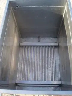 2000 Tanque de cocción/enfriamiento con camisa Paul Mueller: 560 galones. Número de serie: 250063-3. Nat'l Bd: 30825. Dimensiones interiores de pared recta: 5 pies de largo x 3 pies 6-1/2 pulgadas de ancho x 4 pies 3-1/2 pulgadas de alto. Número de tubos de calor/frío: 11 Dimensiones del tubo: 1-1/4 pulg. de diámetro. x 3 pies 6-1/2 pulg. L. Volumen del tubo: 2,5 gal. MAWP: 90 psi a 400°F. MDMT: 30°F a 90 psi. Entradas: (2) 1-1/2 pulg. de diámetro. Accesorios FNPT, (2) 1-1/2 pulg. de diámetro. puertos con tapa (chaqueta), (1) entrada de producto de 5 pies de largo x 3 pies 6-1/2 pulgadas de ancho. Salidas: (2) 1 pulg. de diámetro. puertos (chaqueta), (1) 2 pulg. de diámetro. Puerto de drenaje S-line, (1) 1/2 pulg. de diámetro. puerto, (1) 1 pulg. de diámetro. Conexión FNPT. Dimensiones totales: 5 pies 10 pulgadas de largo x 4 pies 2 pulgadas de ancho x 5 pies 1/2 pulgadas de alto.