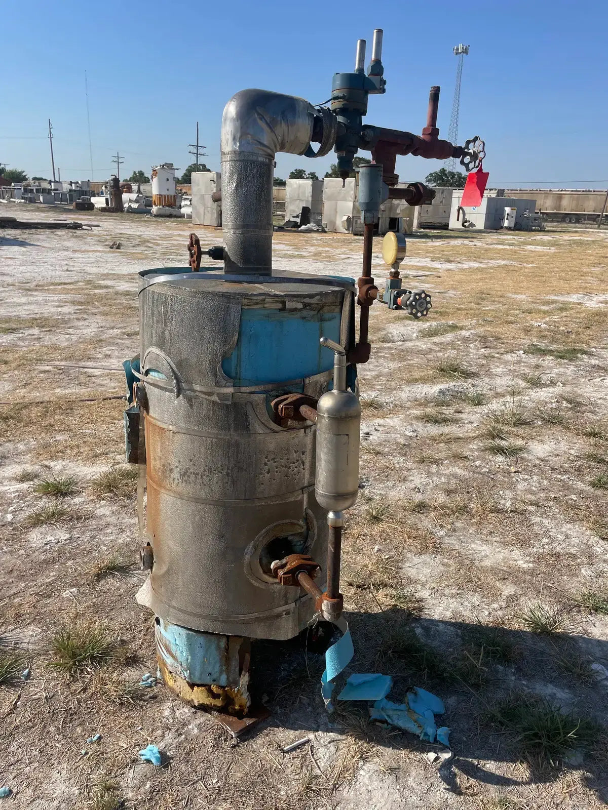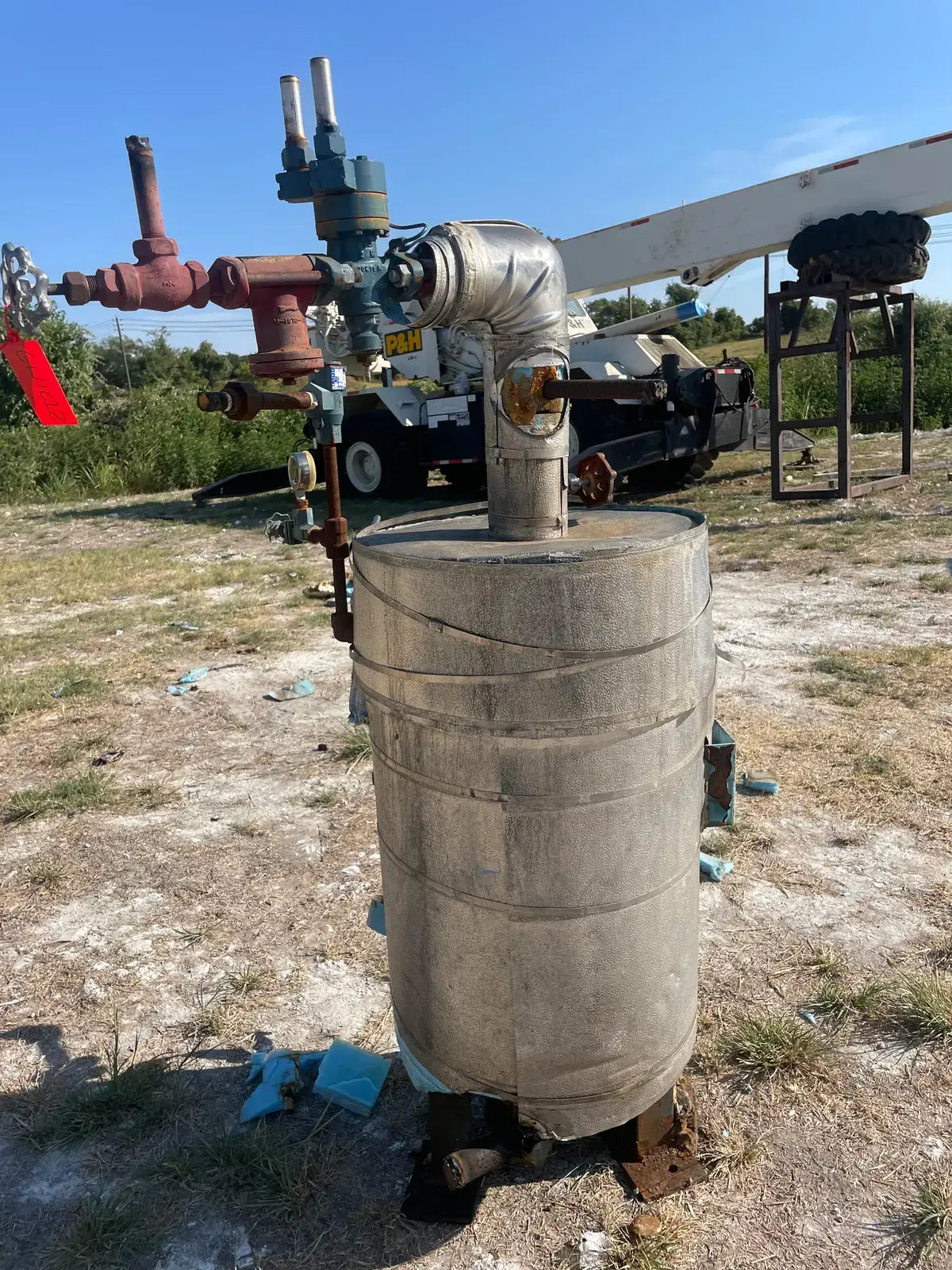 Tanque de descarga certificado por Refrigeration Valves and Systems Corporation. Junta Nacional: 25326. Número de serie: 48568. MAWP: 250 PSI @ 300 F. MDMT: -50 F @ 250 PSI. Año: 2013. Dimensiones estimadas del recipiente: 16" X 32". Capacidad estimada en galones: 32 galones.