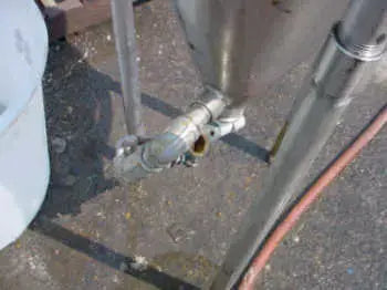 Tanque de embudo con camisa de acero inoxidable, parte superior abierta, 20 pulgadas de diámetro x 26 pulgadas de altura, salida de 1,5 pulgadas, entrada de 3,5 pulgadas en las patas.