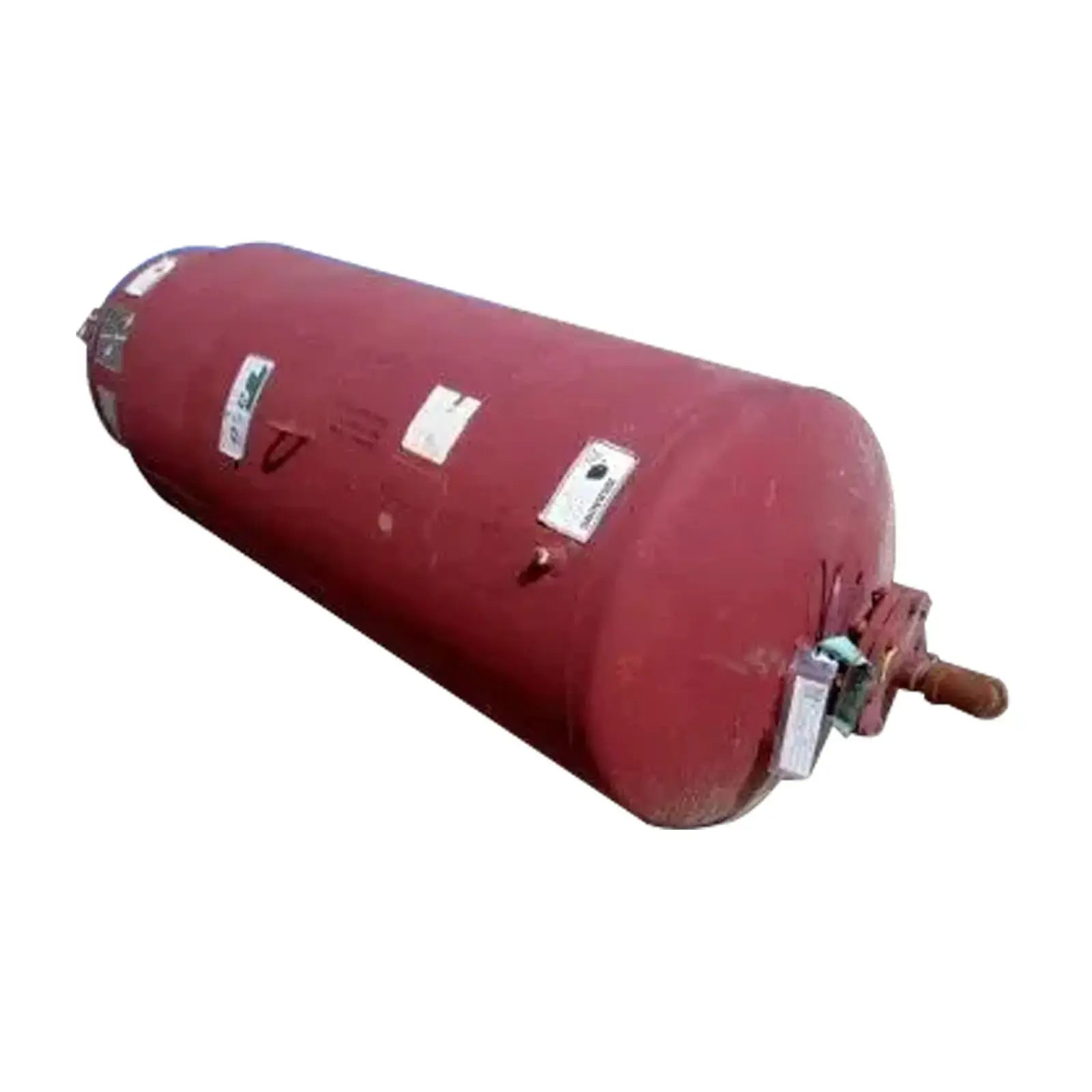 Tanque de expansión TACO 1995: 240 galones. S/N: 1082. Cat. Número: CA800-1. Nat'l Bd: 108405. Lado de la carcasa MAWP a 240 °F: 125 psi. Lado de la carcasa MDMT a 125 psi: -20 °F. Entradas: (1) 2 pulg. de diámetro. virola macho. Salidas: (1) 1-1/2 pulg. de diámetro. FPT. Dimensiones totales: 30 pulgadas de diámetro. x 92 pulgadas de alto.