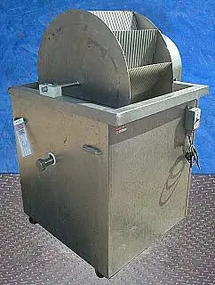 Tanque de inmersión de carrete de acero inoxidable. Modelo: 14A, S/N: 7505014. Tanque: 15 galones. Dimensiones del carrete: 60 pulgadas de diámetro. x 15 pulgadas de ancho (12) Compartimentos de carrete: 14 pulgadas de largo x 4-3/4 pulgadas de ancho x 8 pulgadas de alto. Entradas/salidas: macho roscado de 2 pulgadas. Motor: 1725 rpm, 110 V, 60 ciclos, 4,0 amperios, monofásico, relación de 12 a 5. Con ruedas. Dimensiones totales: 36 pulgadas de largo x 36 pulgadas de ancho x 55 pulgadas de alto.