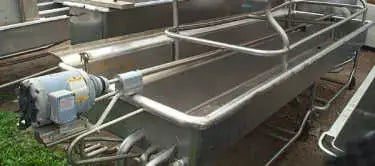 Tanque de lavado de doble compartimento de acero inoxidable, 134 pulgadas de largo x 16-1/2 pulgadas de ancho x 11 pulgadas de alto cada compartimento, salida de 2 pulgadas.