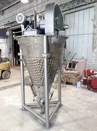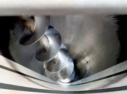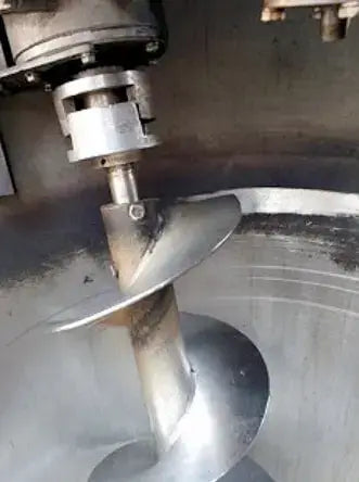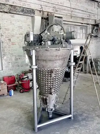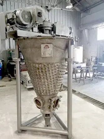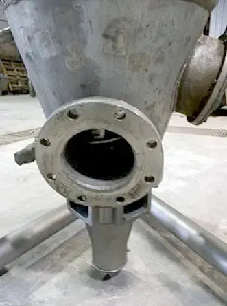 Mezclador estilo Nauta con camisa de JH Day Company. S/N 86698. Junta Nacional: 1228. Año: 1973. Chaqueta MAWP 125 PSI a 300F. Este estilo de mezclador se conoce como mezclador de tornillo cónico o mezclador Nauta. Construcción de acero inoxidable con descarga de fondo cónico. Cuenta con un sinfín de doble acción que gira alrededor del interior del tanque para una acción de mezcla. Comúnmente utilizado en estas industrias: alimentos, cremas cosméticas, fertilizantes, panadería, productos farmacéuticos, adhesivos, detergentes, polvos, etc. Se sabe que son suaves y tienen una mínima ganancia de calor al mezclar. La aplicación anterior fue una planta procesadora de alimentos. La barrena tiene 12 pulgadas de diámetro x 3,5 pies de largo. Dimensiones del tanque: 45 pulgadas de diámetro interior x 63 pulgadas de profundidad. Capacidad estimada: 400 galones. (2) Motores: 5 HP y 1 HP, 230/460V, trifásicos, 60 Hz. Descarga del tanque: DI de 6 pulgadas con brida de 8 pernos de 11 pulgadas. Puertos de chaqueta: 1,5 pulgadas. Dimensiones totales: 5,5 pies x 5 pies x 9 pies de alto. Incluye (3) extensiones de piernas de 4 pies.