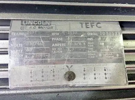 - Si hay varios motores, descripciones de motores frente a especificaciones: 5 HP & 1 HP