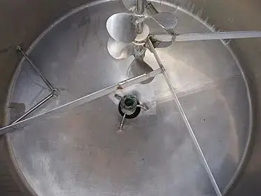 Tanque de mezcla y mezcla APV Crepaco de una sola carcasa: 625 galones. N/S: F-5172. Construcción de acero inoxidable. Tapa de cúpula. Lightnin Heavy Duty, mezclador de alto flujo, modelo: ND-4, S/N: 704492, requisitos eléctricos: 1,5 hp, 1740 rpm, 230/460 V, 60 Hz, trifásico. Impulsado por engranajes para una salida de alto par. El alto par es muy eficaz en el manejo de fluidos de baja viscosidad. Mandril de accionamiento positivo máx. Diámetro del eje de la hélice: 7/8 pulg. El mezclador está equipado con (2) 10 pulg. de diámetro. Hélices montadas en un eje de 7/8 pulg. x 46 pulg. H. Entradas: (1) 1-1/2 pulg. de diámetro. puerto, (1) 3 pulg. de diámetro. Ajuste de línea I. Salidas: (1) 2 pulg. de diámetro. válvula de bola, (1) 2 pulg. de diámetro. puerto de descarga con una brida de 6 pulg. y (4) orificios pasantes de 3/4 pulg. a distancias entre centros de 3-1/2 pulg. (1) 2-1/2 pulg. de diámetro. respiradero. Dimensiones totales: 80 pulgadas de largo x 74 pulgadas de ancho x 10 pies 10 pulgadas de alto.