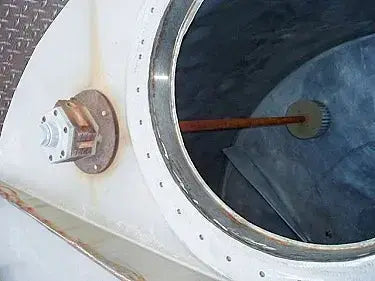 Tanque de procesador con camisa: 800 galones. Dimensiones interiores (lado recto): 72 pulg. de diámetro. x 48 pulg. H. Agitador de barrido inferior y mezclador de cizalla. El producto se estabiliza mediante el deflector adjunto. Motor neumático Dayton, modelo: 4Z231. S/N: 0890. Entradas: (1) 2 pulg. de diámetro. tubo de cobre (medio), (1) 2-1/2 pulg. de diámetro. accesorios roscados. Salidas: (1) 2 pulg. de diámetro. tubo de cobre (medios), (1) 2 pulg. de diámetro. Accesorios de línea S. Dimensiones totales: 98-1/2 pulgadas de largo x 86 pulgadas de ancho x 80 pulgadas de alto.