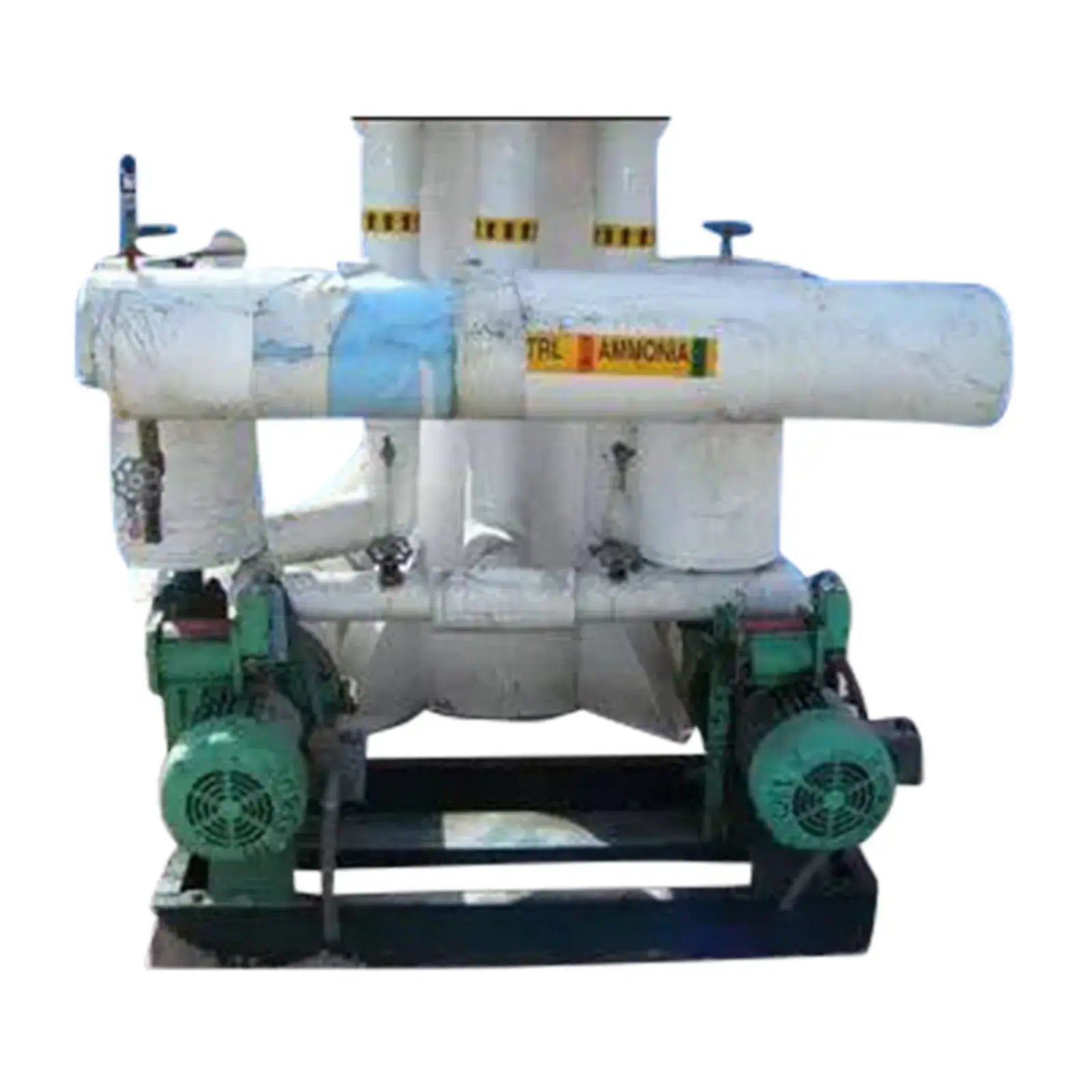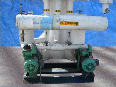 1996 RVS Tanque de recirculación de amoníaco. Refrigerante: R-717. MAWP: 150 psi a 300ºF. MDMT: -50ºF a 60 psi. Dimensiones interiores de pared recta: 54 pulg. de diámetro. x 10 pies de altura. Radio: extremos elípticos 2:1. (2) Bombas Cornell. Modelo: 2CB-5-4. (2) Motor eléctrico Baldor – 5 hp, 230/460 V, trifásico. Entradas/Salidas: (1) 6 pulg. de diámetro. puertos, (1) 8 pulg. de diámetro. puerto, (2) 2 ½ pulg. de diámetro. puertos, (3) 1 pulg. de diámetro. puertos. Dimensiones totales: 6 pies 9 pulgadas de largo x 6 pies 4 pulgadas de ancho x 18 pies 4 pulgadas de alto (H12).