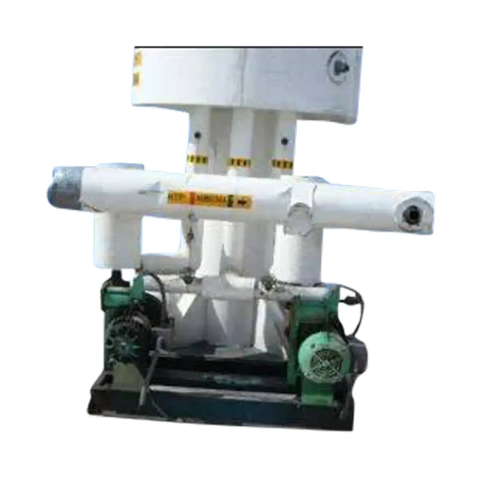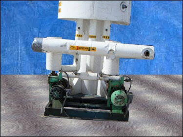 1996 RVS Tanque de recirculación de amoníaco. Refrigerante: R-717. MAWP: 150 psi a 300ºF. MDMT: -20ºF a 150 psi. Dimensiones interiores de pared recta: 54 pulg. de diámetro. x 10 pies de altura. Radio: extremos elípticos 2:1. (2) Bombas Cornell. Modelo: 2CB-5-4. (2) Motor eléctrico Baldor: 5 hp, 1760 rpm, 13,6/6,8 amperios, 230/460 V, 60 Hz, trifásico. Entradas/Salidas: (2) 6 pulg. de diámetro. puertos, (1) 4 pulg. de diámetro. puertos, (3) 2 ½ pulg. de diámetro. puertos, (3) 1 pulg. de diámetro. puertos. Dimensiones totales: 6 pies 9 pulgadas de largo x 6 pies 4 pulgadas de ancho x 18 pies 4 pulgadas de alto (H12).