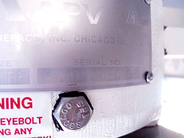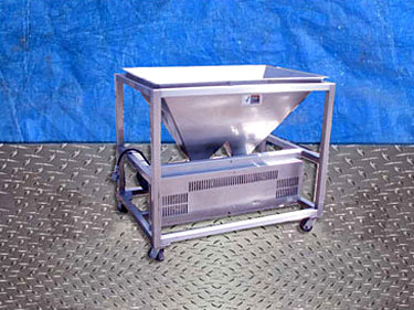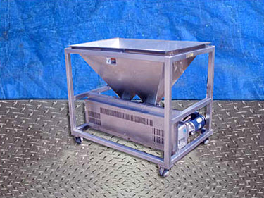 Tanque de tolva de alimentación de acero inoxidable APV con bombas - 60 galones. Dimensiones de la tolva de alimentación: 4 pies 1 pulg. de largo x 2 pies 7 pulg. de ancho x 2 pies de alto. (2) bombas de desplazamiento positivo APV Crepaco, motor eléctrico Leeson de 1 hp y reductor de velocidad de engranajes Nord (27 finales rpm). Dimensiones totales: 4 pies 1 pulgada de largo x 3 pies de ancho x 4 pies de alto.