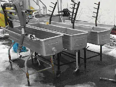 Tanque de tubería Girton, 6 pies y 4 pulgadas. Tanque Girton COP Thrift King de acero inoxidable con estructura de hierro negro y patas ajustables. Tiene estante para tubos y estante trasero. 77 pulgadas de largo x 23 pulgadas de ancho x 38 pulgadas de alto. Drenaje Tri-Clamp de altura ajustable de 2 pulgadas y extremo Tri-Clamp de 2 pulgadas. Es posible que sea necesario pintar el marco [Buen estado]
