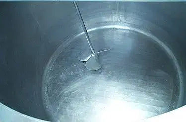 Tanque multiproceso con camisa Cherry Burrell: 250 galones. Construcción de acero inoxidable con tapas abatibles de 2 piezas. Mezclador neumático Gast, dimensiones del eje: 1 pulg. de diámetro x 32 pulg. de alto, hélice: 17 pulg. de diámetro. La velocidad del mezclador se varía ajustando el suministro de aire. Los aspectos clave de un mezclador de aire Gast son: tamaño y peso reducidos, chispas no eléctricas, funcionamiento en frío hasta temperaturas ambiente de 250 °F y mantenimiento mínimo. Entradas: (3) roscadas de 1-1/2 pulg. (macho), (1) línea 'S' de 2 pulg. Salidas: (3) válvula de línea 'S' de 1-1/2 pulg. roscada (macho), 3 pulg. Dimensiones totales: 65 pulgadas de largo x 56 pulgadas de ancho x 66 pulgadas de alto.