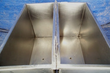 (2) Tanque de Lavado de Acero Inoxidable. Dimensiones interiores 12 pulgadas de ancho, 30 pulgadas de largo, 20 pulgadas de alto. Dimensiones totales: cada tanque de lavado 14 pulgadas de ancho, 32 pulgadas de largo, 36 pulgadas de alto. Ambos tanques de lavado: 24 pulgadas de ancho, 64 pulgadas. L, 72 pulgadas de alto. Cada tanque tiene 2 patas de 16 pulgadas de alto. Estos tanques se pueden unir entre sí para fijarlos a una pared individualmente.