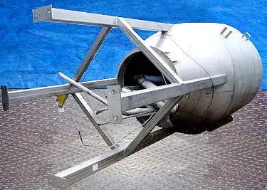 - Descripción de entradas y salidas de tanques: Inlets: (1) 1-1/2 in. dia. Sline, (1) 2-1/2 in. dia. pipe, (1) 3 in. dia. threaded fitting, (2) 19-1/2 in. diameter clamp ports. Outlets: (1) 43 in. dia. outlet with a 50 in. dia. flange and (8) 5/8 in. dia. attachment holes at a center-tocenter distance of 46 in.