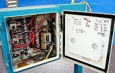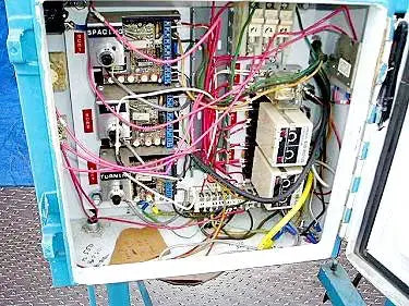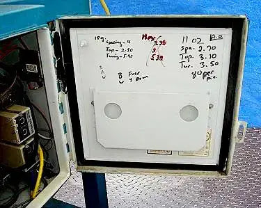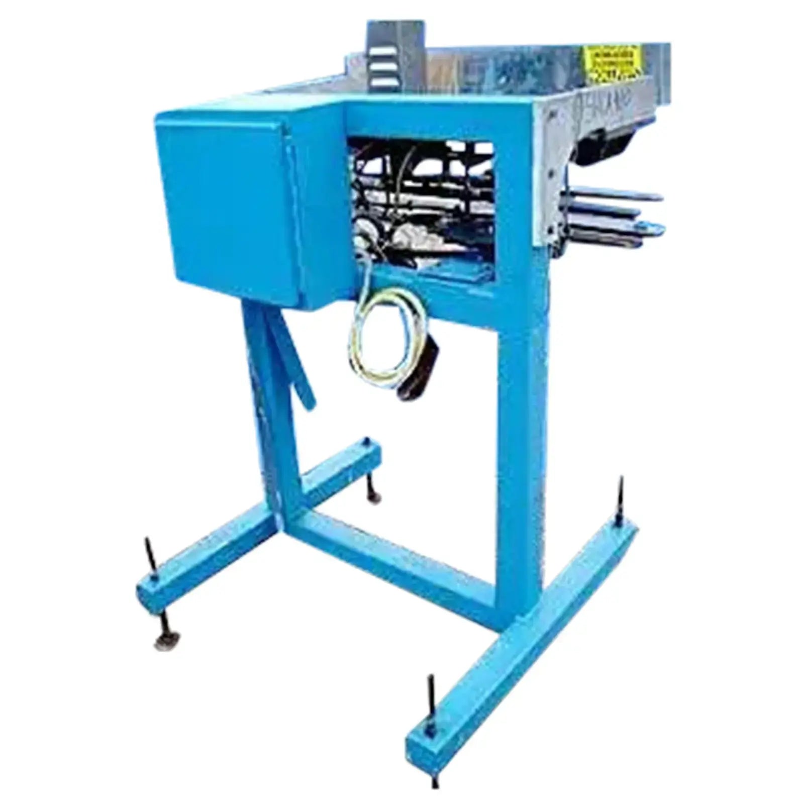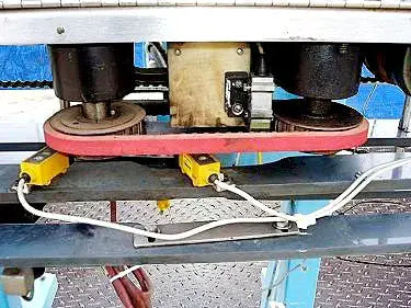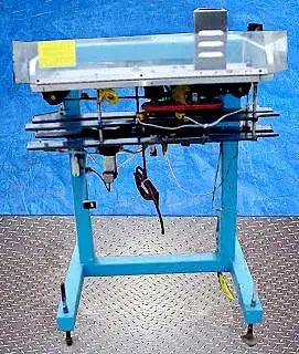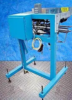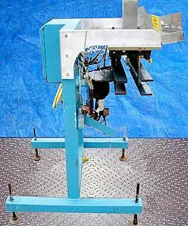 Taponadora. Capacidad: 80 ppm. Dimensiones máximas del producto: 2-1/2 pulg. de ancho x 6-1/2 pulg. de alto. Longitud del transportador: 37-1/2 pulg. Diámetro de la rueda de estrella: 10 pulg. (5) Los interruptores fotoeléctricos Omron también incluyen panel de control con Botones de arranque/parada y desconexión de emergencia. (4) Patas ajustables. Motor transportador eléctrico, 1/25 hp, 3450 rpm, 288 rpm (final), 90 V, 0,4 amperios, relación 12:1, torsión 3,9 in-lb. Motor de rueda estrella, 1/27 hp, 400 rpm, 34 rpm (final), 90 V, 0,5 amperios, relación 12:1, torque: 55 in-lb. Altura de entrada/salida: 39 pulgadas. Dimensiones totales: 37 pulgadas de largo x 36-1/2 pulgadas de ancho x 56-1/2 pulgadas de alto.