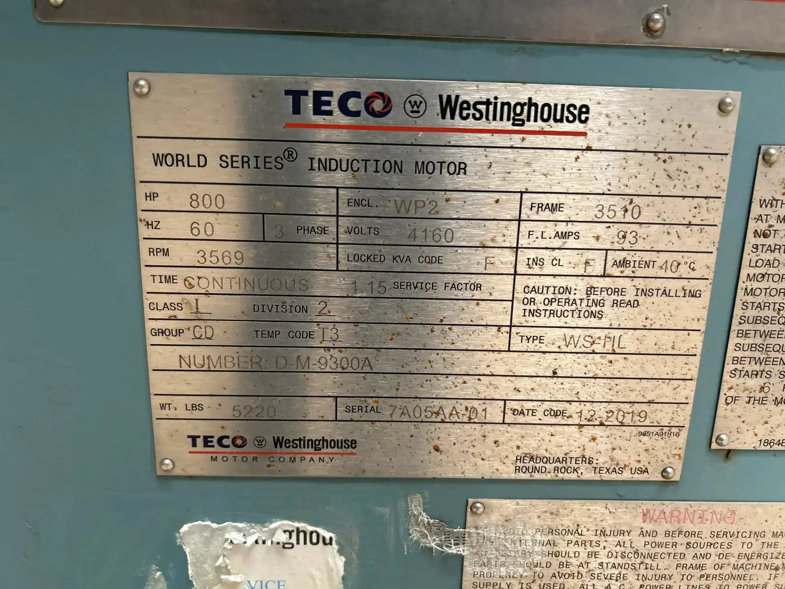 Motor de inducción Teco WS-HL (800 HP, 3569 RPM, 4160 V)