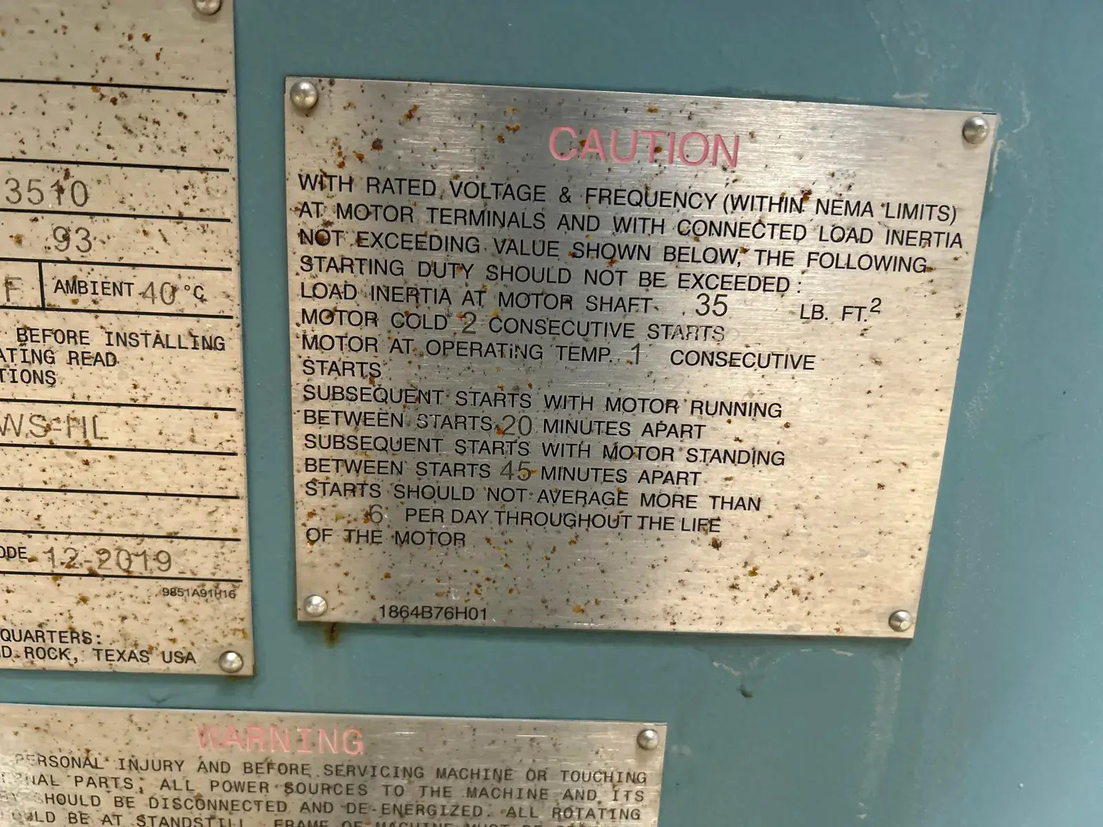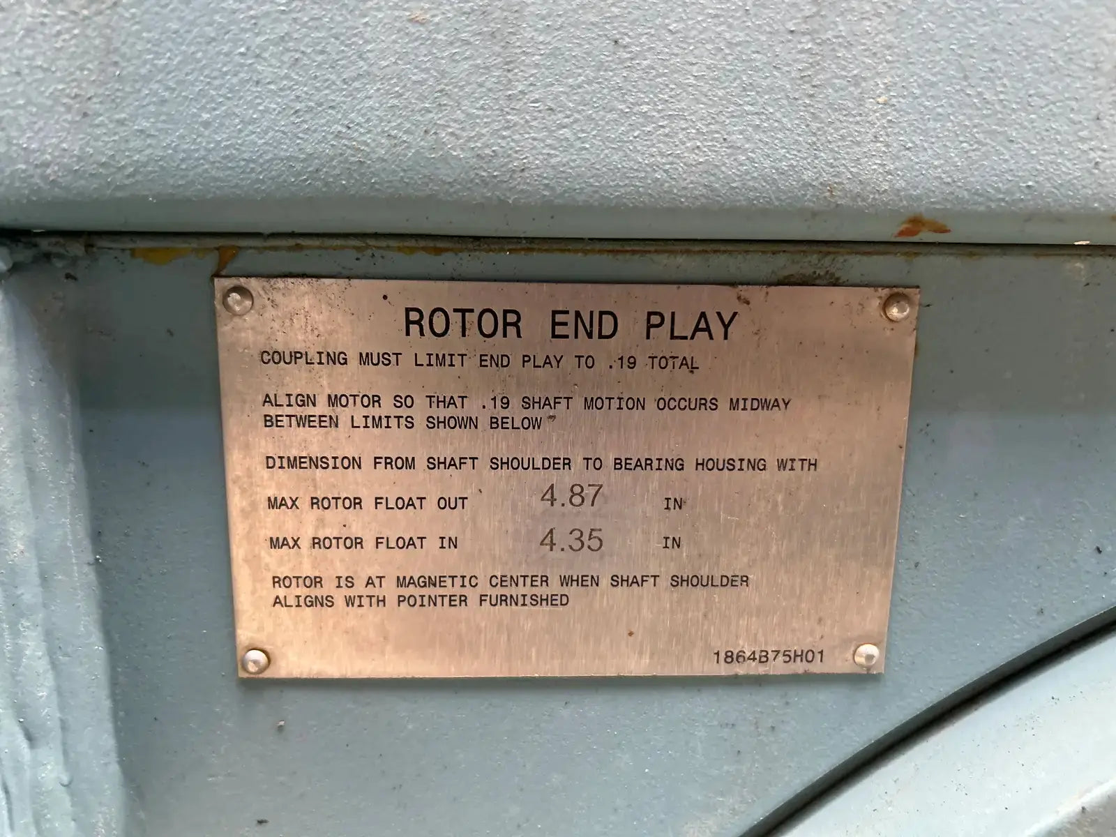 Motor de inducción de la serie mundial Teco-Westinghouse. Tipo: WS-HL. N.º de serie: 7A05AA-01. Bastidor: 3510. Fuente de alimentación: HP: 800, Voltios: 4160, Hz: 60, RPM: 3569, Amperios FL: 93.