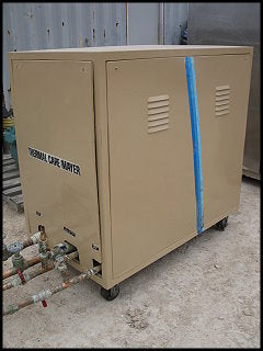 Thermal Care/Sistema de control de temperatura del agua Accu-Chiller refrigerado por agua Mayer: 10 toneladas. Modelo: AQW1004X. Número de serie: CQ96828. Refrigerante: R-22. Compresor Copeland Scroll, modelo: BRH2-1000-TFD-902, S/N: 93H91568, 10 HP, 14.5 FLA, 460-380/420 V, 104 LRA, 60/50 Hz, trifásico. Los enfriadores de la serie AQ están diseñados para uso en interiores en lugares de fabricación industrial para proporcionar un control de temperatura preciso. Entradas: (1) 1 pulg. de diámetro. tubo de cobre (condensador), (1) 1-1/4 pulg. de diámetro. tubo de cobre (condensador). Salidas: (1) 1 pulg. de diámetro. tubo de cobre (condensador), (1) 1-1/4 pulg. de diámetro. tubo de cobre (condensador). Dimensiones totales: 6 pies de largo x 2 pies 6 pulgadas de ancho x 4 pies 4 pulgadas de alto (ACN111-88) (H15).
