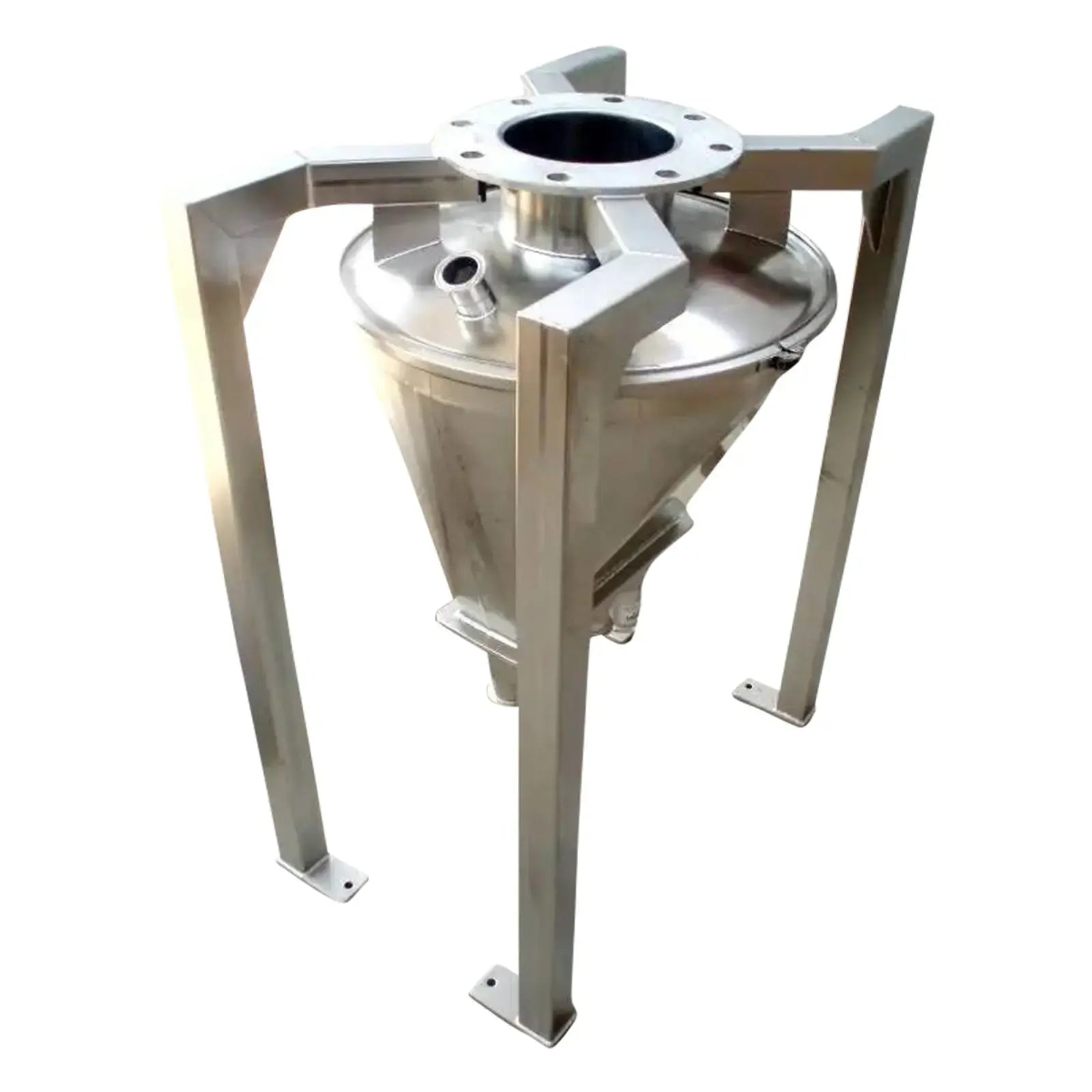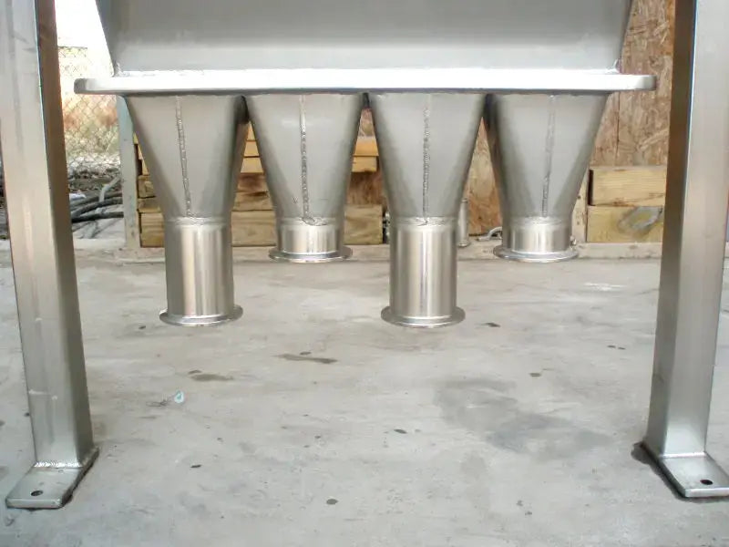 Tolva de recogida con soporte de 15 galones. Entradas: (1) 7 pulg. de diámetro. brida con (8) 7/8 pulg. de diámetro. Orificios de montaje de centro a centro de 4 pulgadas adyacentes y de centro a centro de 10-1/2 pulgadas opuestas. (1) Entrada s-line de 1-1/2 pulg. Salidas: (4) 2 pulg. de diámetro. Accesorios de línea S. Dimensiones totales: 2 pies 4-7/8 pulgadas de largo x 1 pie 10-1/2 pulgadas de ancho x 3 pies 2 pulgadas de alto.