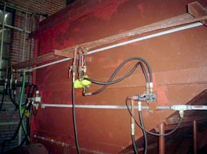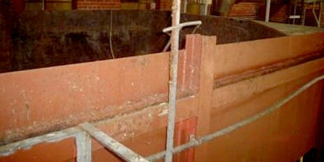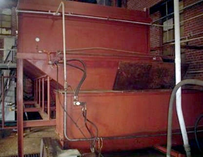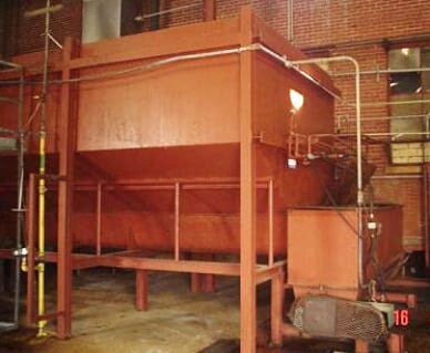 Tolva de sujeción de hierro. Con transportador de tornillo, 25 pies de largo x 10 pies de ancho x 7 pies de profundidad para contener el producto de renderizado en bruto.