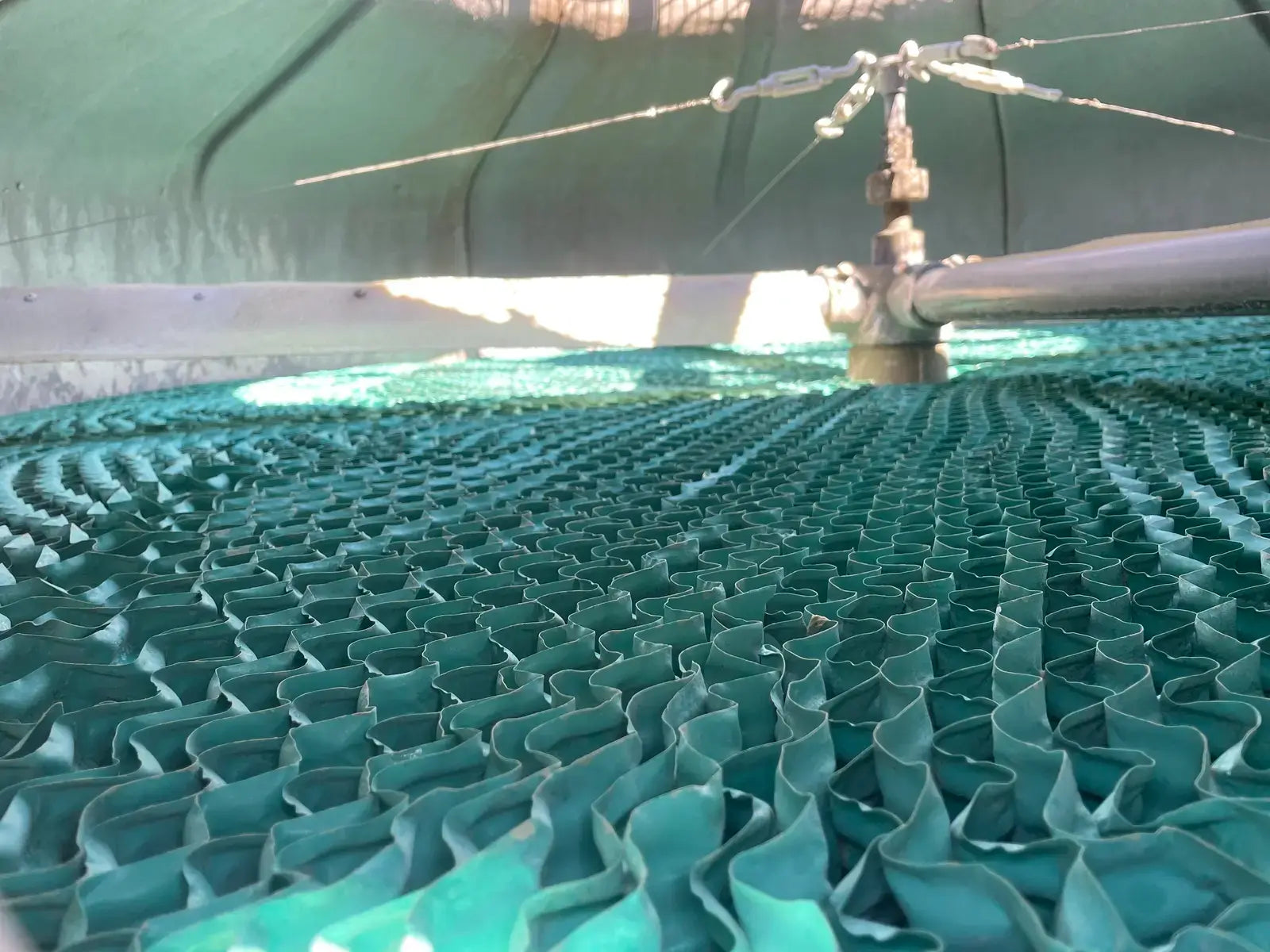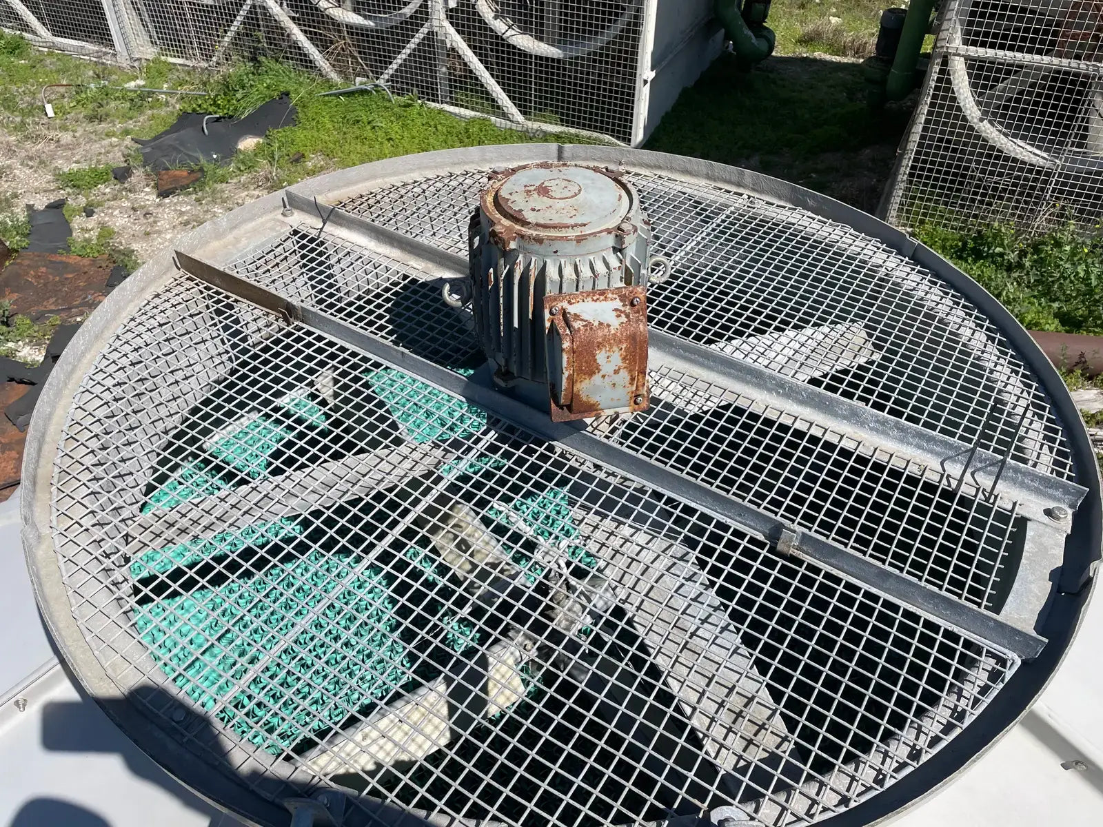Torre de enfriamiento de tiro inducido de contador Amcot. Modelo: ST-100. Número de serie: 97800. Toneladas nominales: 76. Capacidad de refrigeración: 200.000. Volumen de aire: 24.500 CFM. Flujo de agua: 208 GPM. Motor del ventilador: 5 HP, 60 Hz, 3 PH. Conexiones de tubería: Entrada: 4 pulg., Salida: 4 pulg. Fecha de fabricación: 31/05/06.